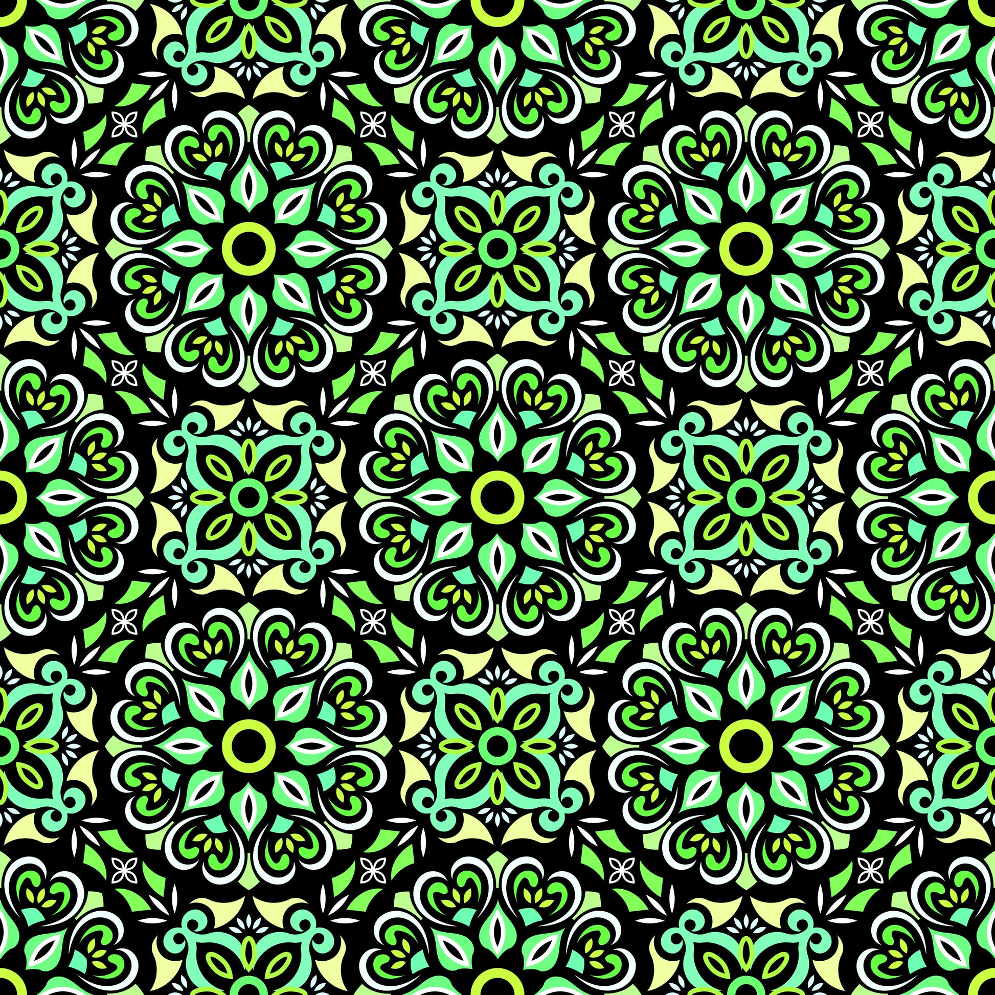 Green - Turquoise Mandala Fabric - 206