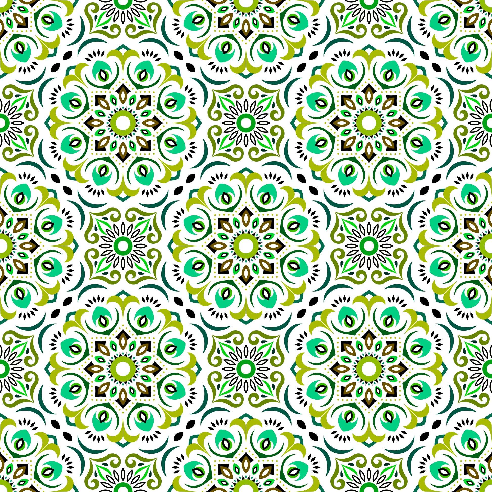 Green - Turquoise Mandala Fabric - 209i