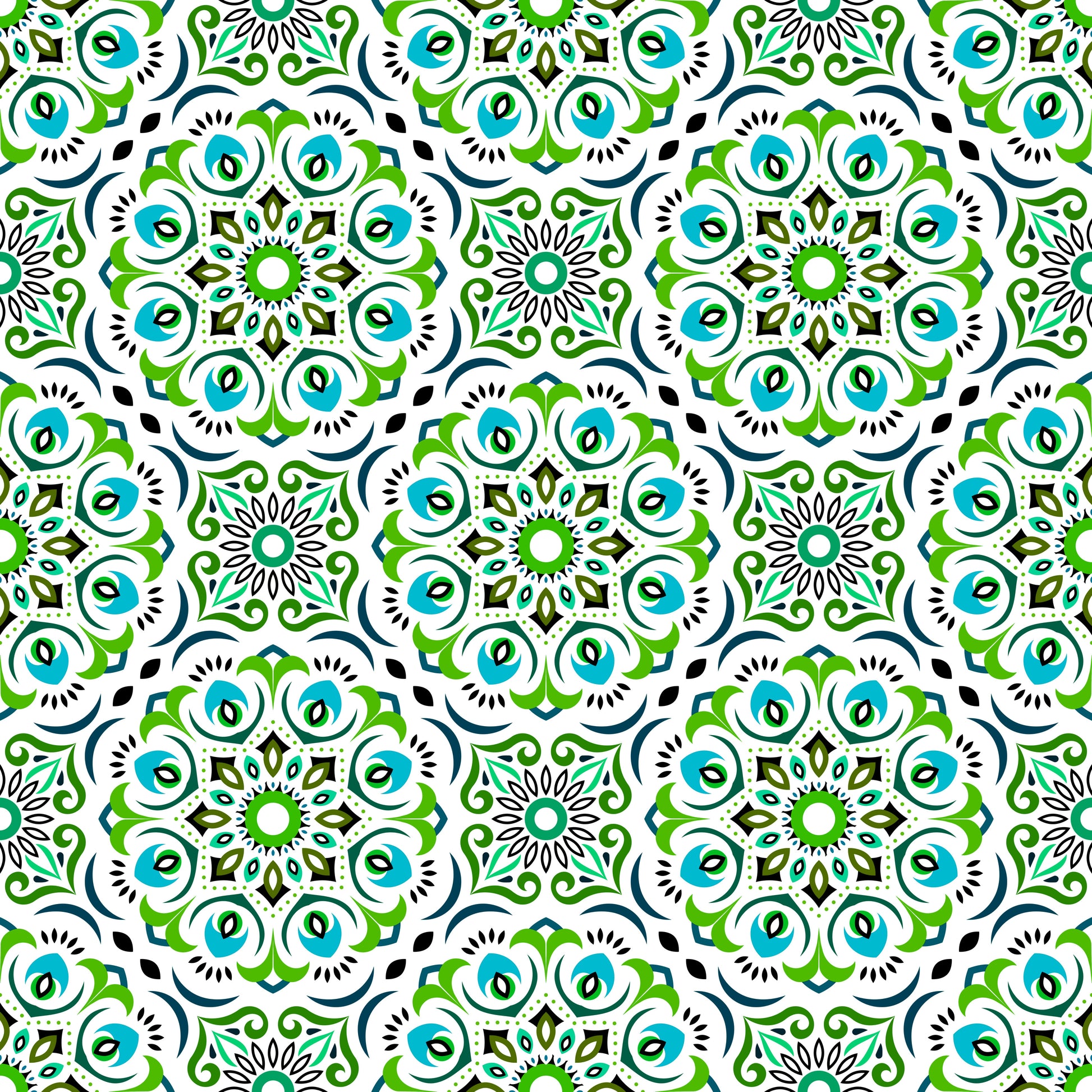 Green - Turquoise Mandala Fabric - 209i