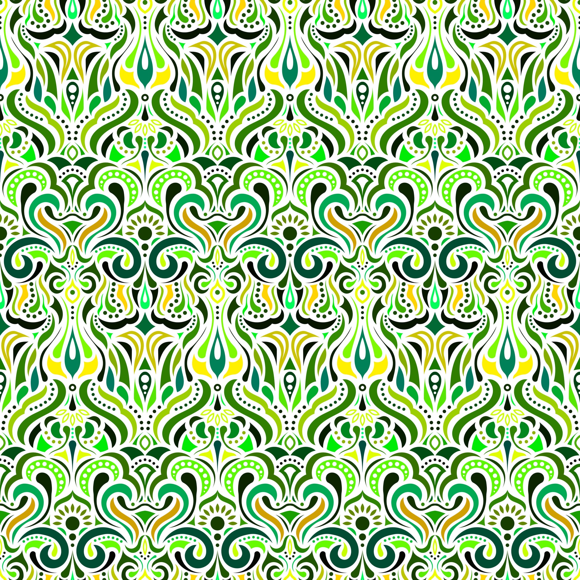Green - Yellow Abstract Doodle Fabric 1012i
