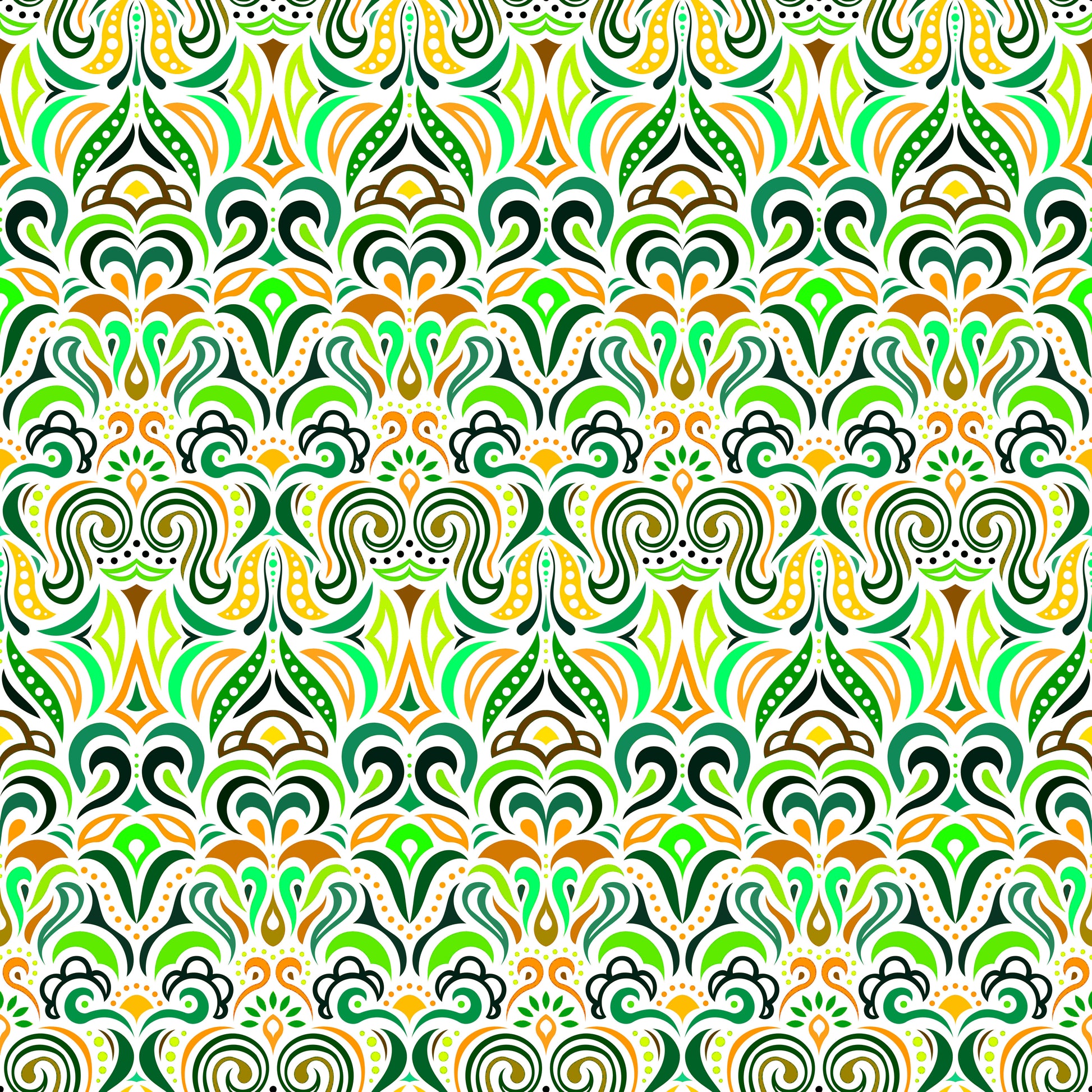 Green - Yellow - Orange Abstract Doodle Fabric 1008.3i