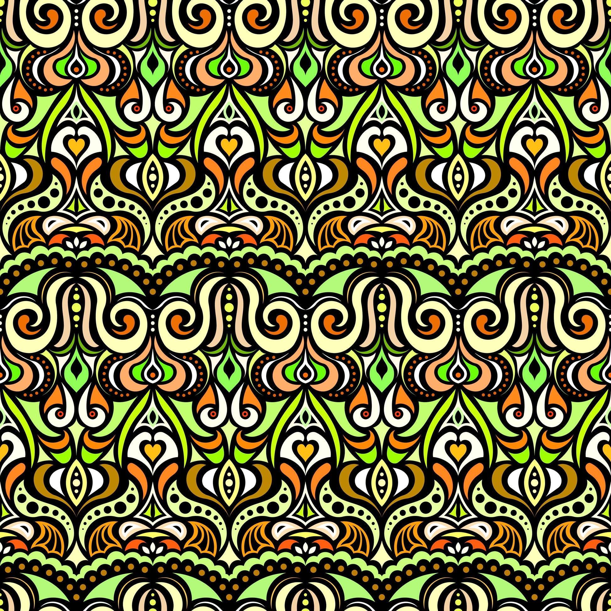 Green - Yellow - Orange Abstract Doodle Fabric 1010.2