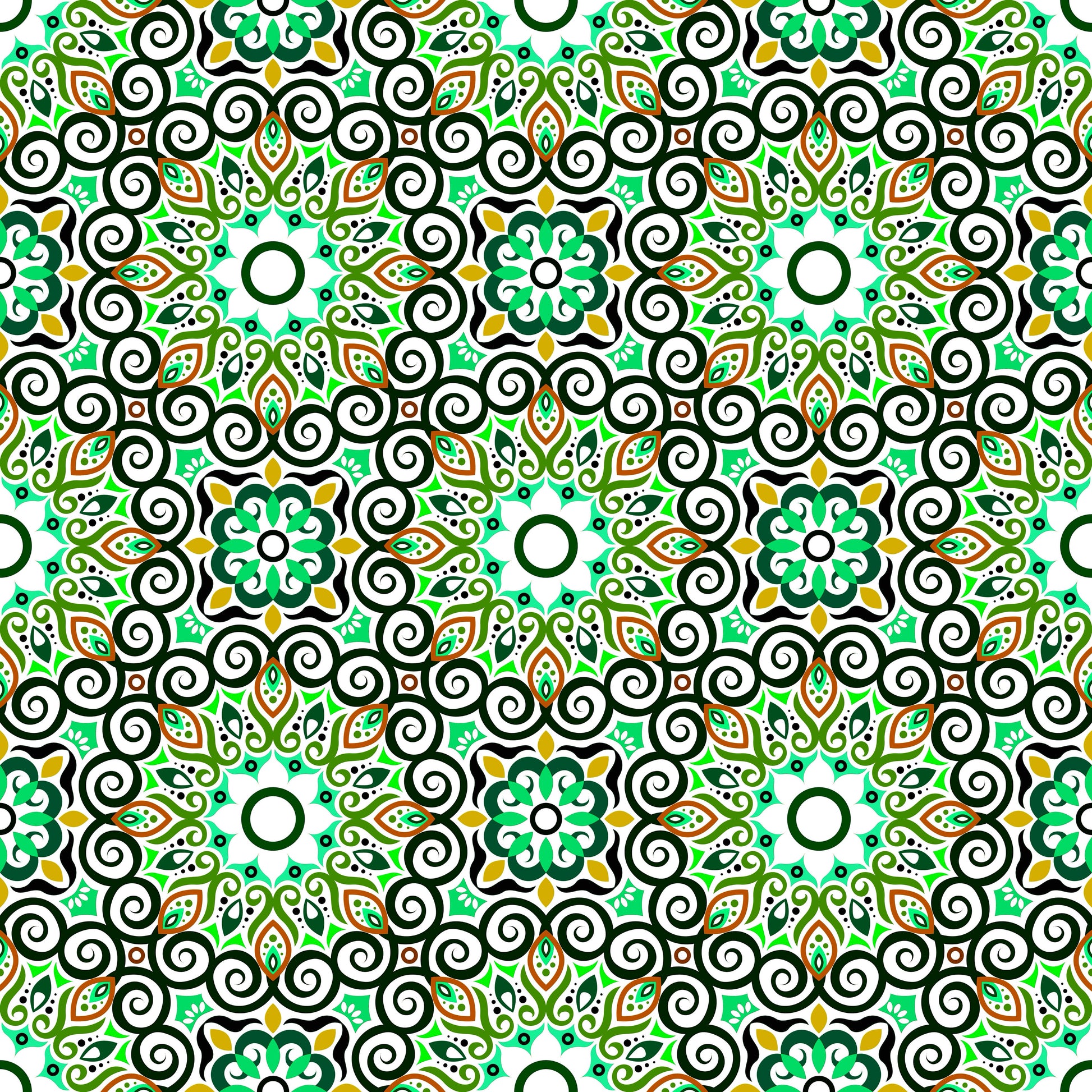 Green - Yellow - Orange Mandala Fabric - 125i