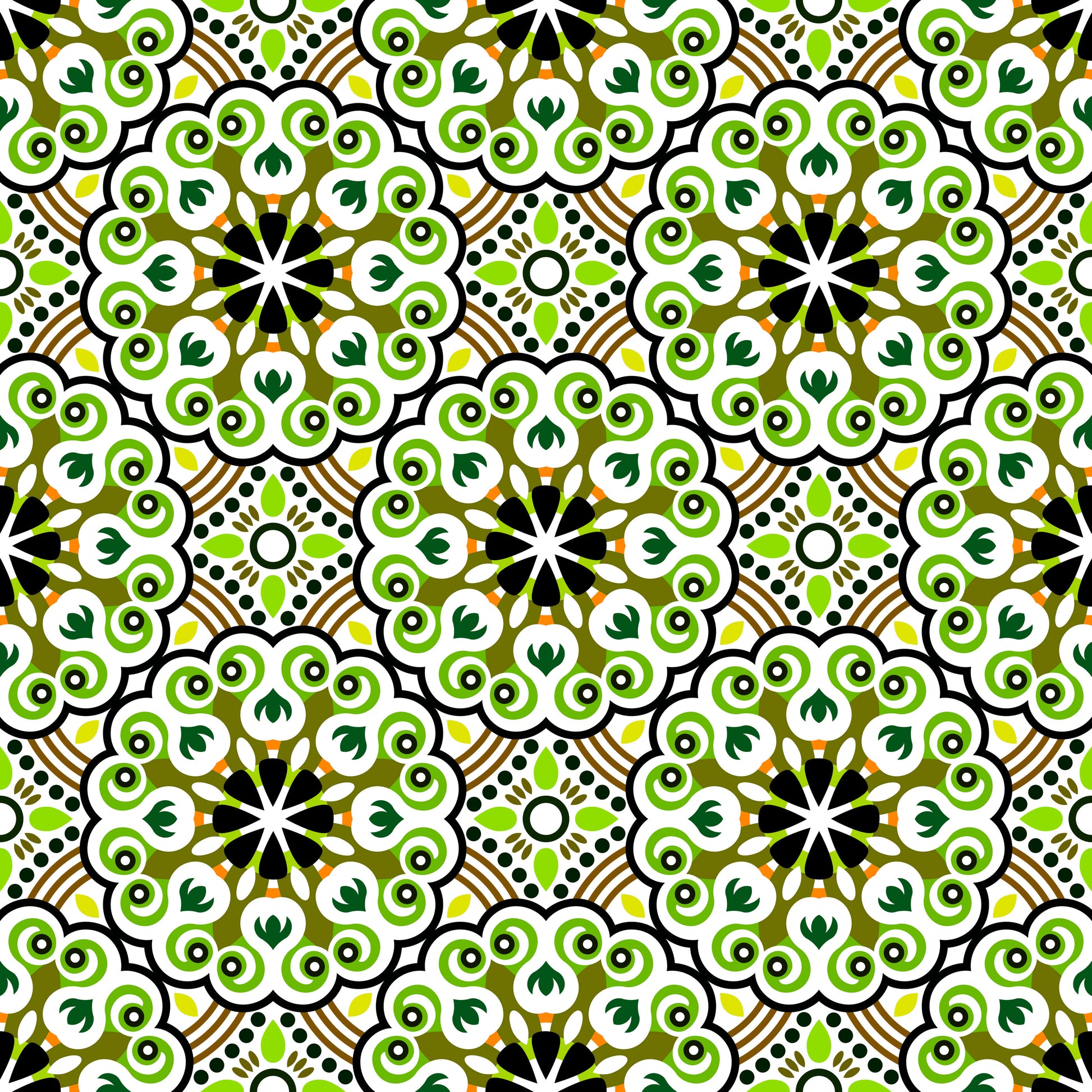 Green - Yellow - Orange Mandala Fabric - 132i