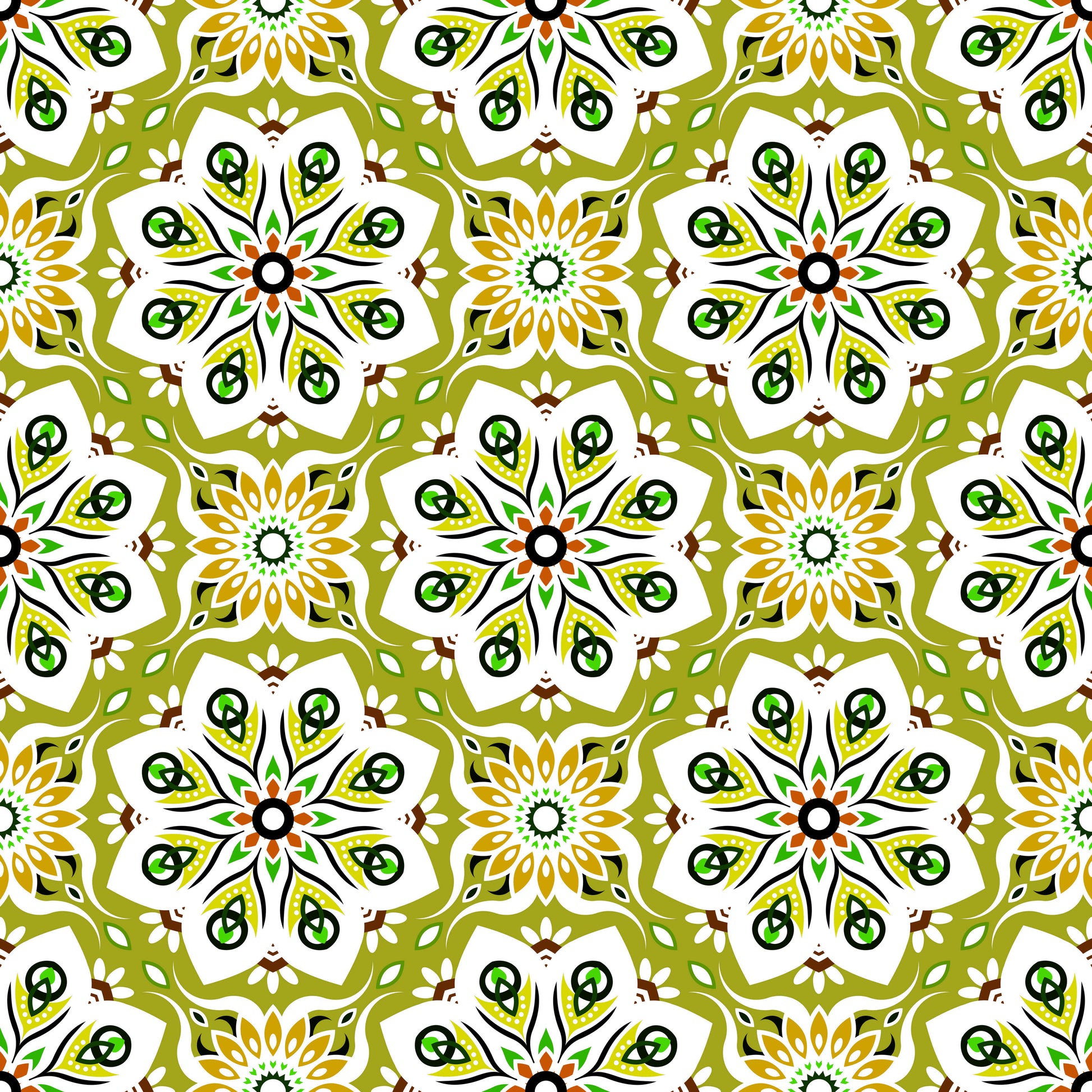Green - Yellow - Orange Mandala Fabric - 236i