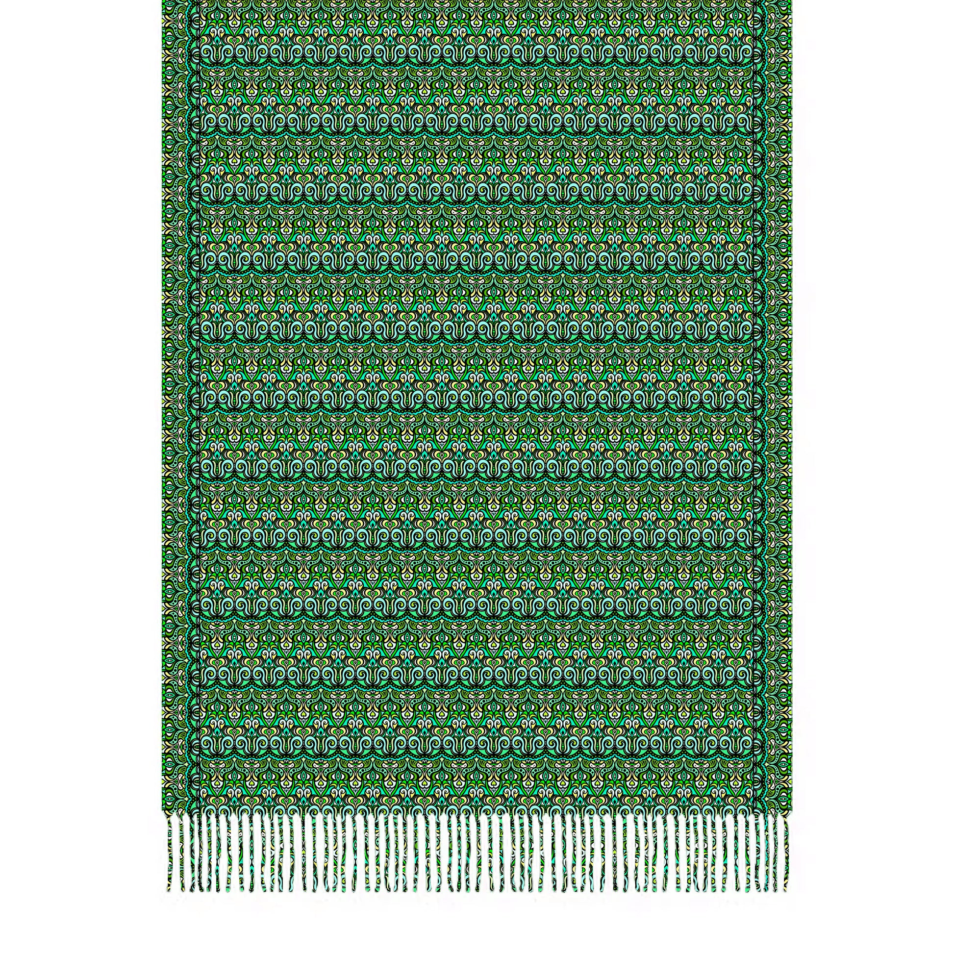 Green - Yellow - Turquoise Abstract Doodle Scarf with Tassels