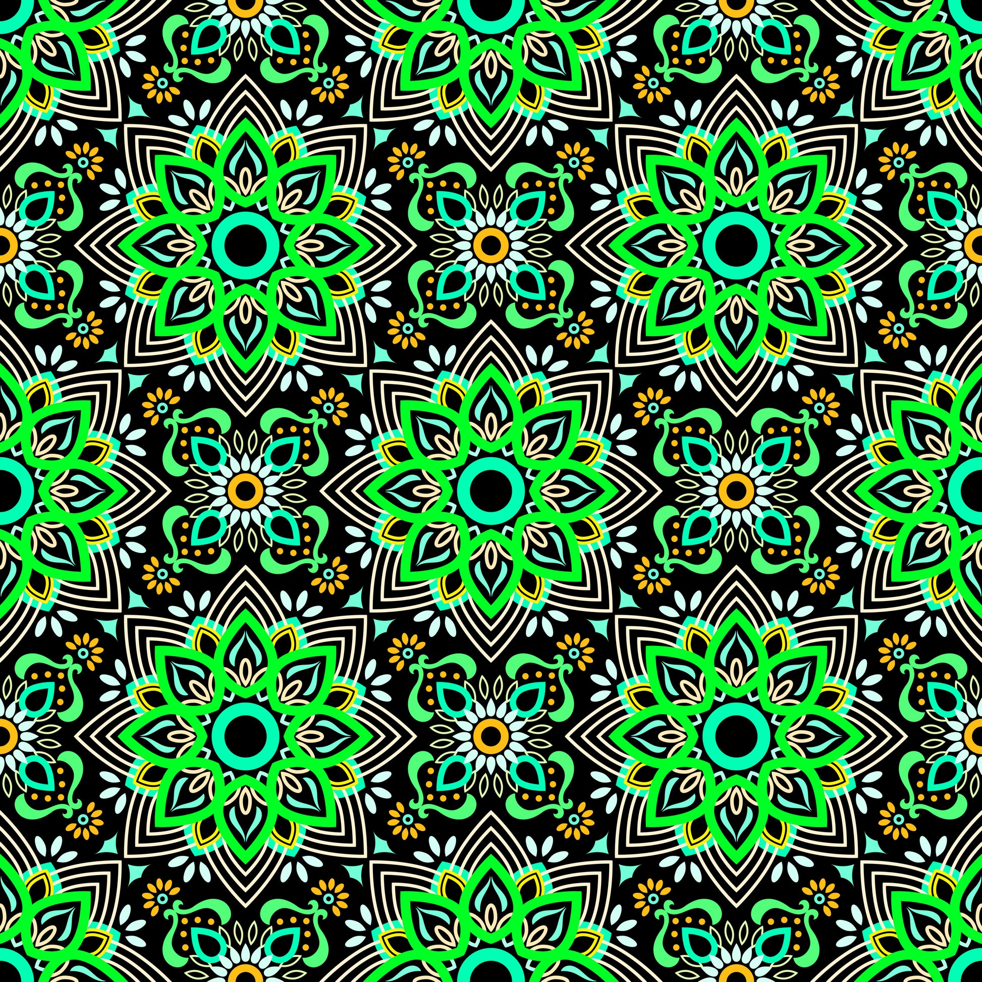 Green - Yellow - Turquoise Mandala Fabric - 145