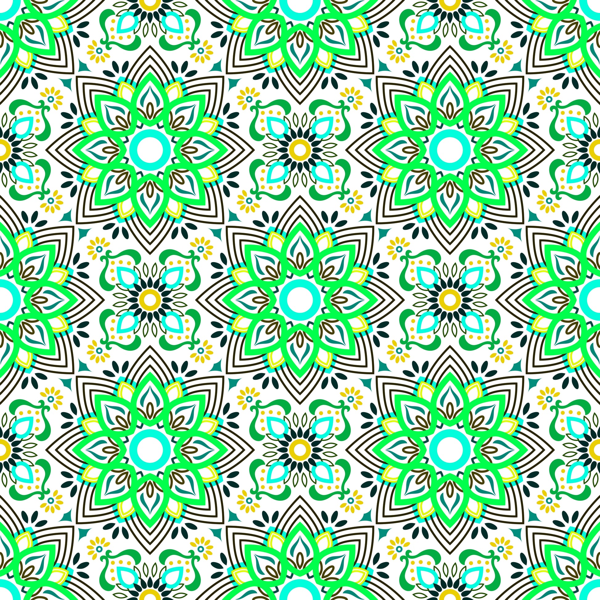 Green - Yellow - Turquoise Mandala Fabric - 145i