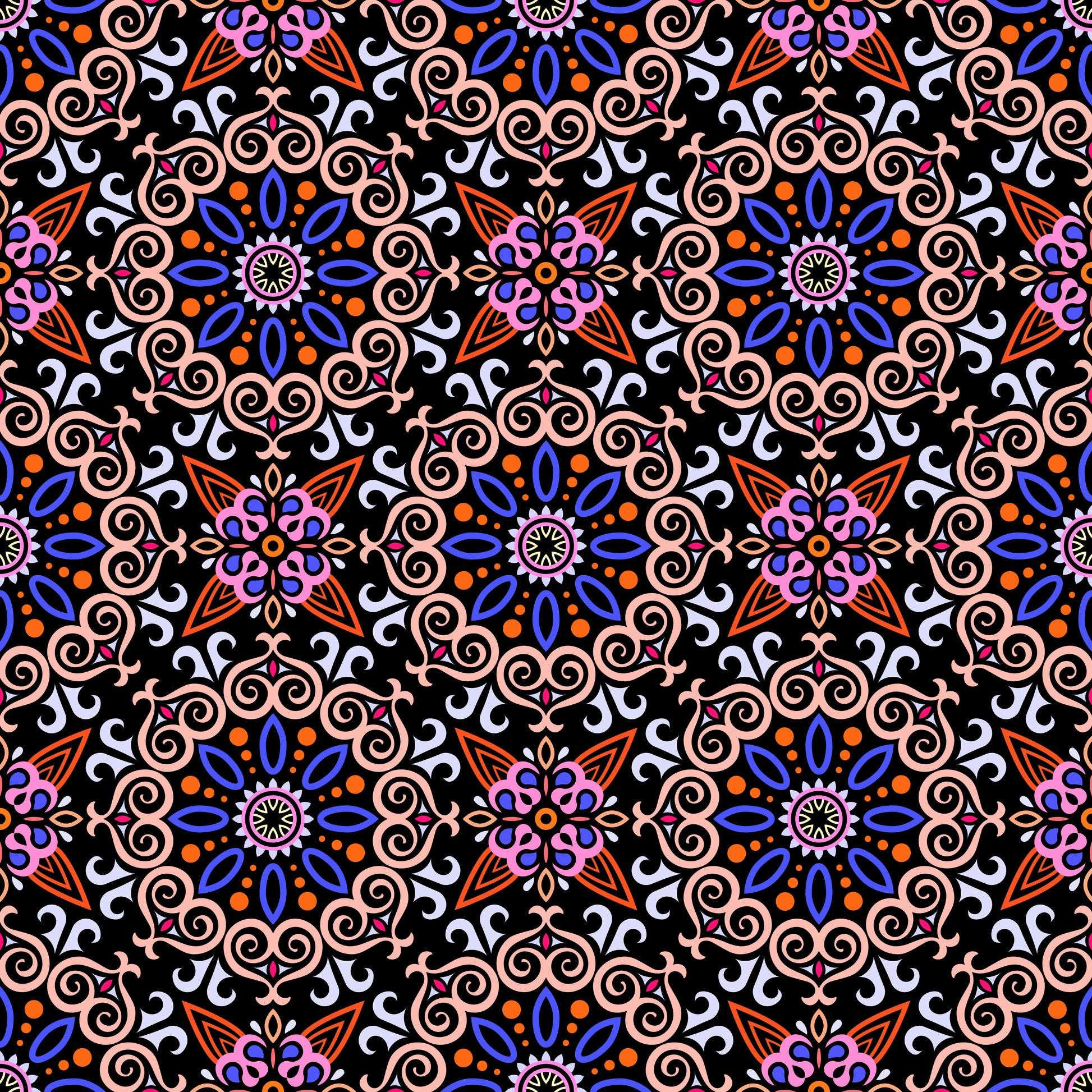 Orange - Blue - Pink Mandala Fabric - 138