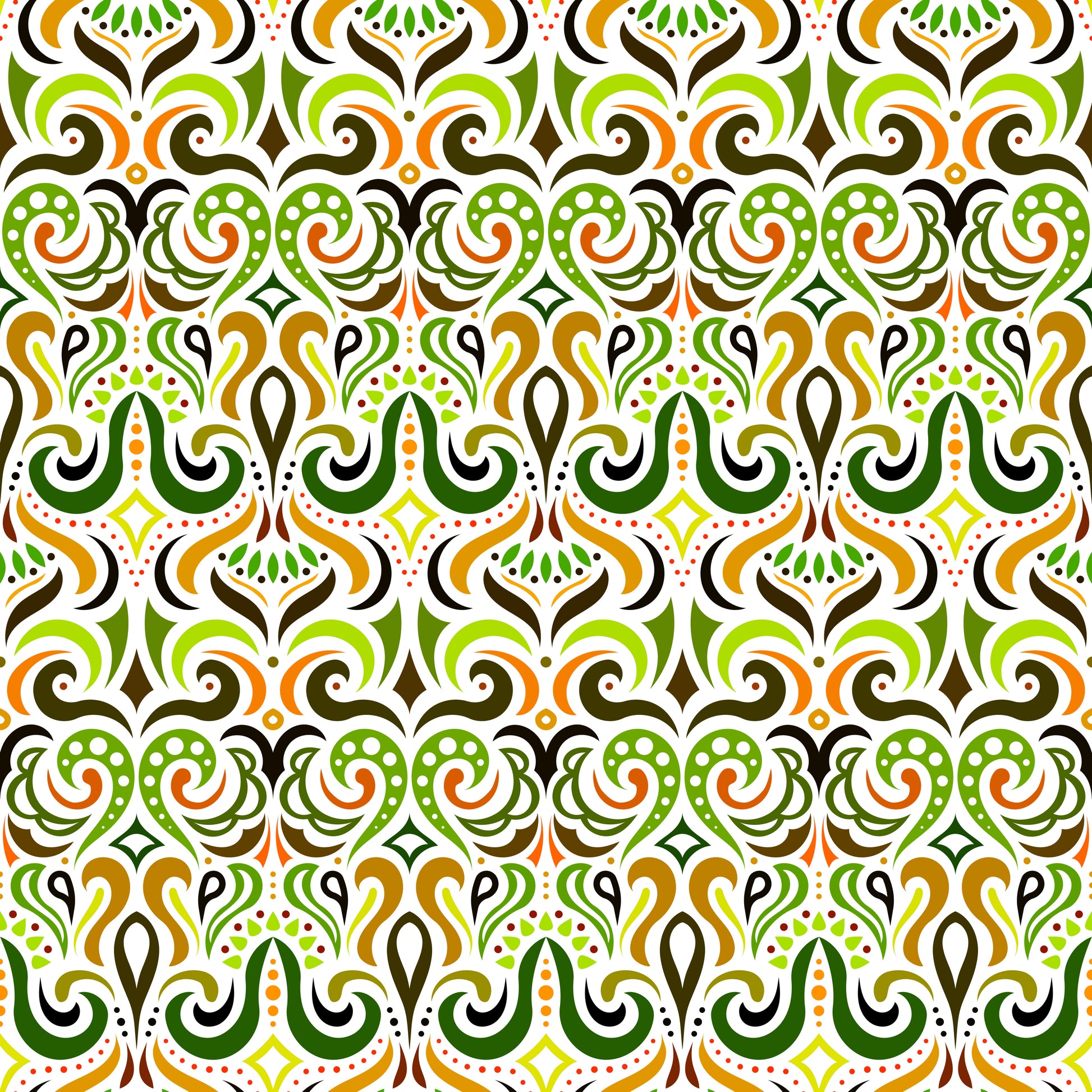 Orange - Green Abstract Doodle Fabric 1001i