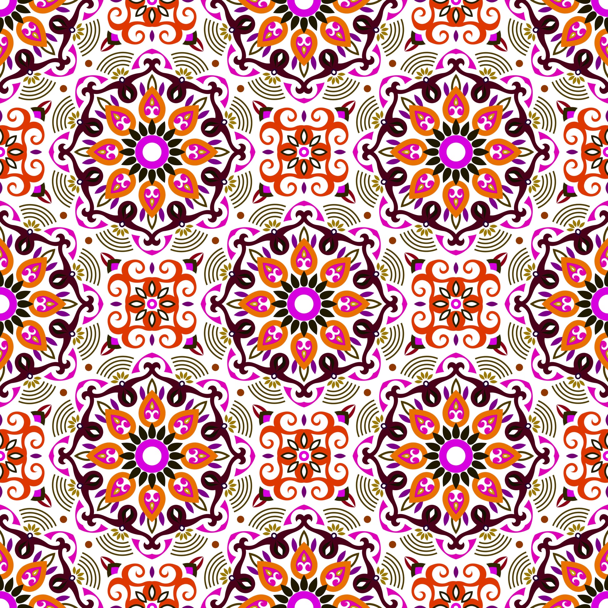Orange - Pink - Brown Mandala Fabric - 140i