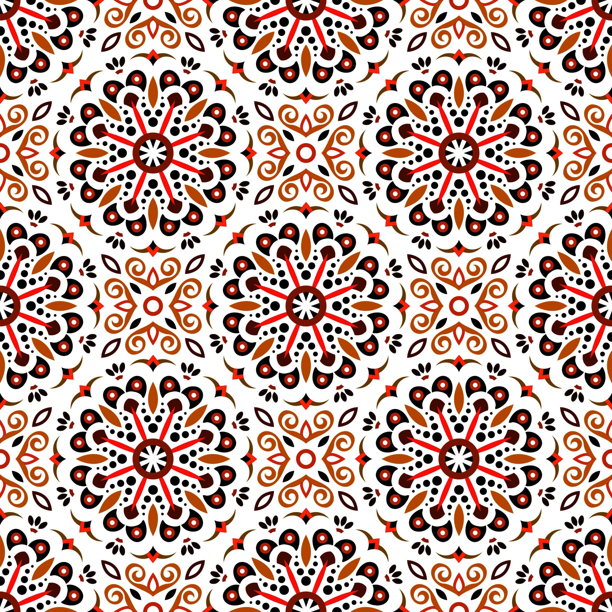 Orange - Red Mandala Fabric - 156i