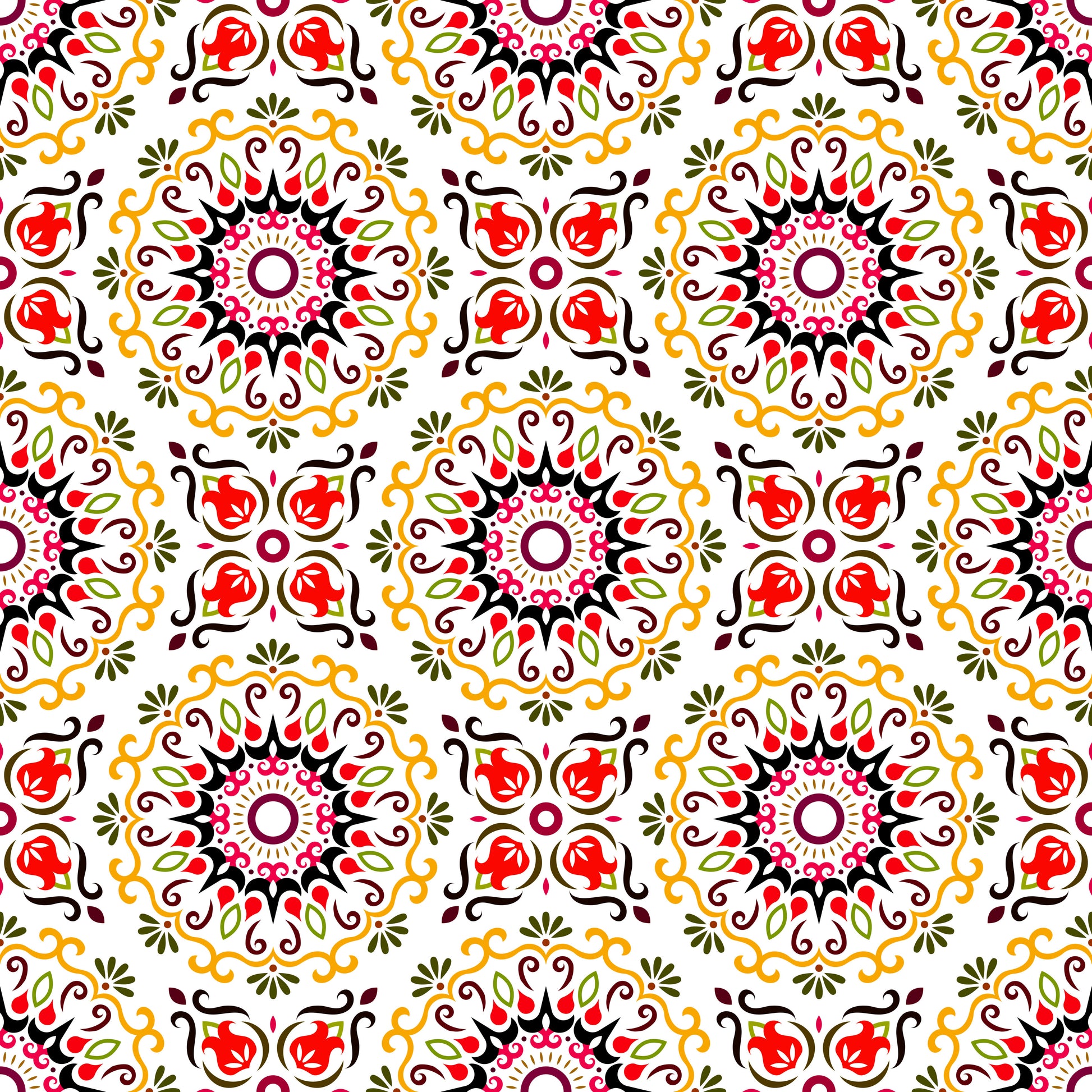 Orange - Red Mandala Fabric - 174i