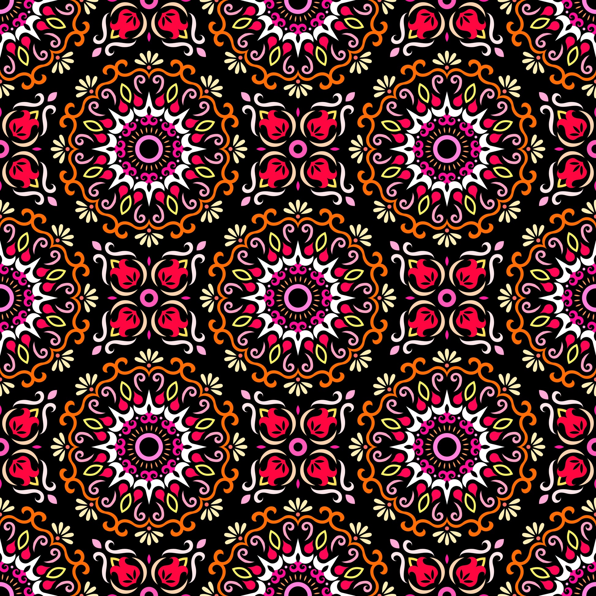 Orange - Red - Yellow Mandala Fabric - 174