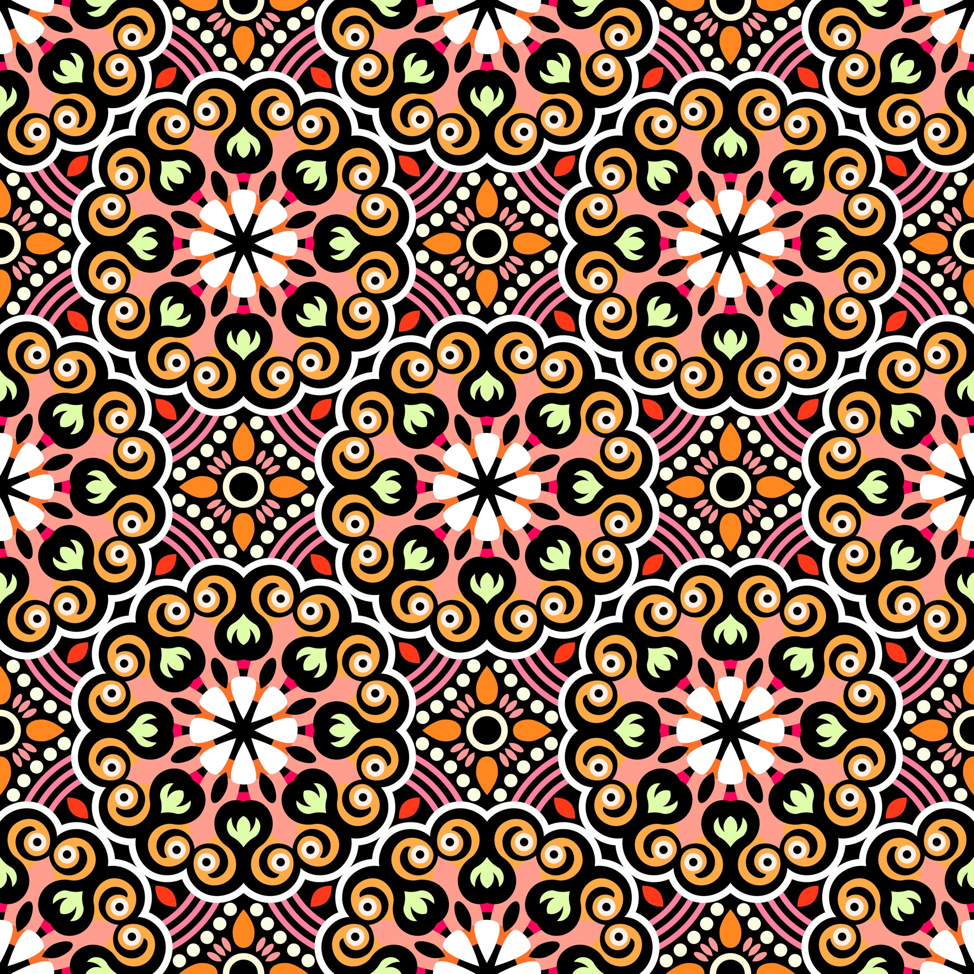 Orange - Yellow - Red Mandala Fabric - 132