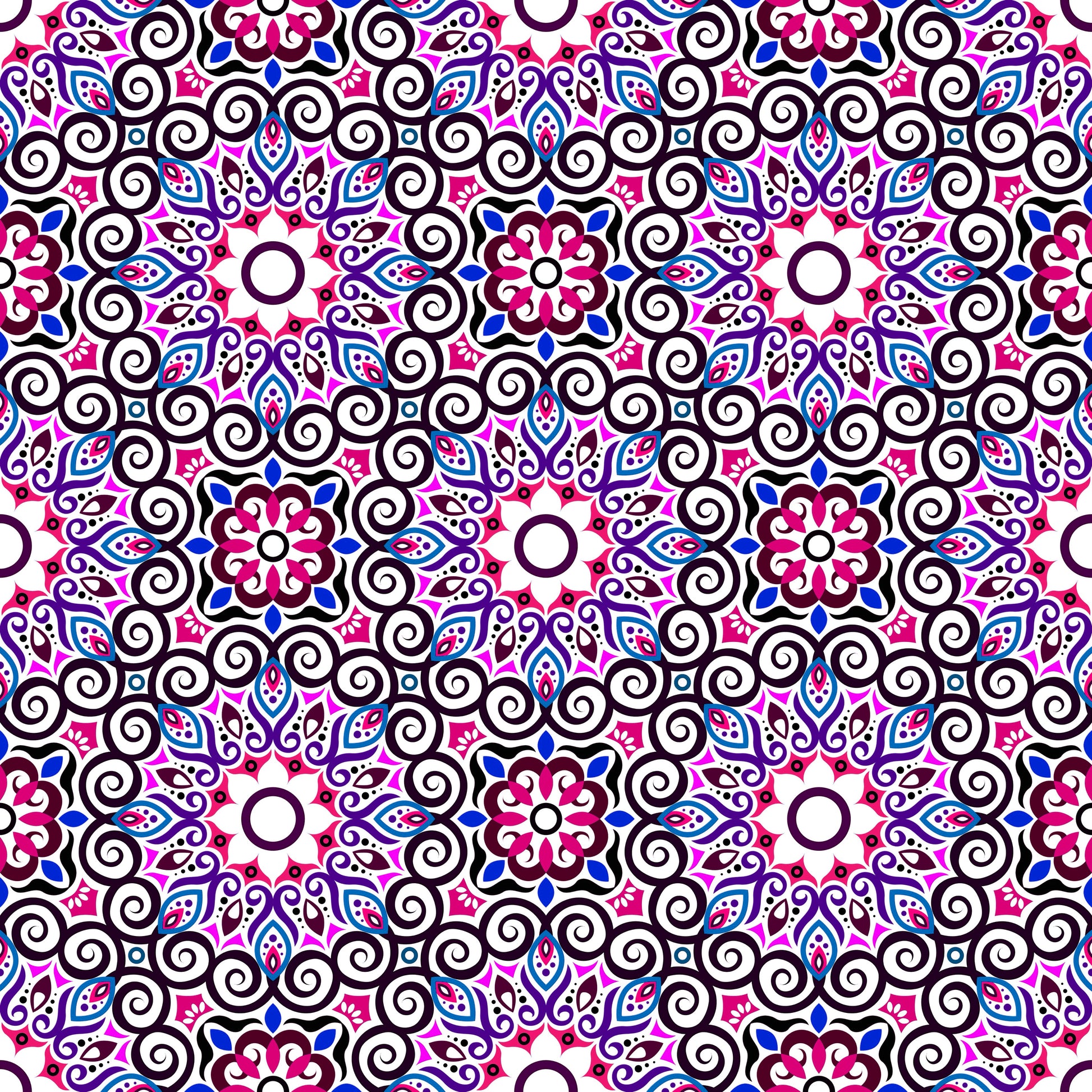 Pink - Blue - Purple Mandala Fabric - 125i