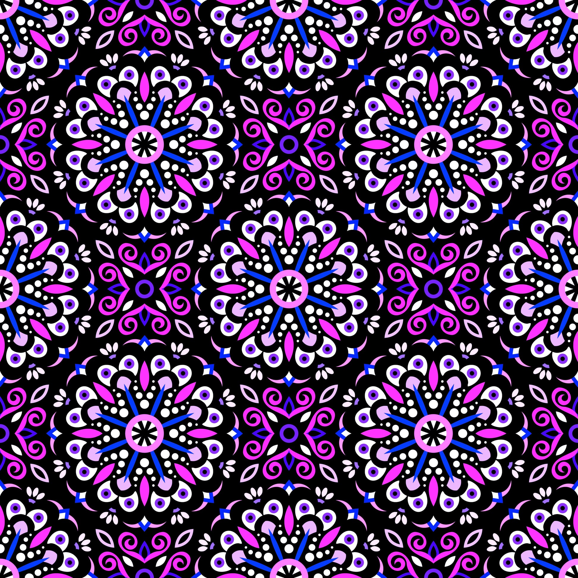 Pink - Blue - Purple Mandala Fabric - 156