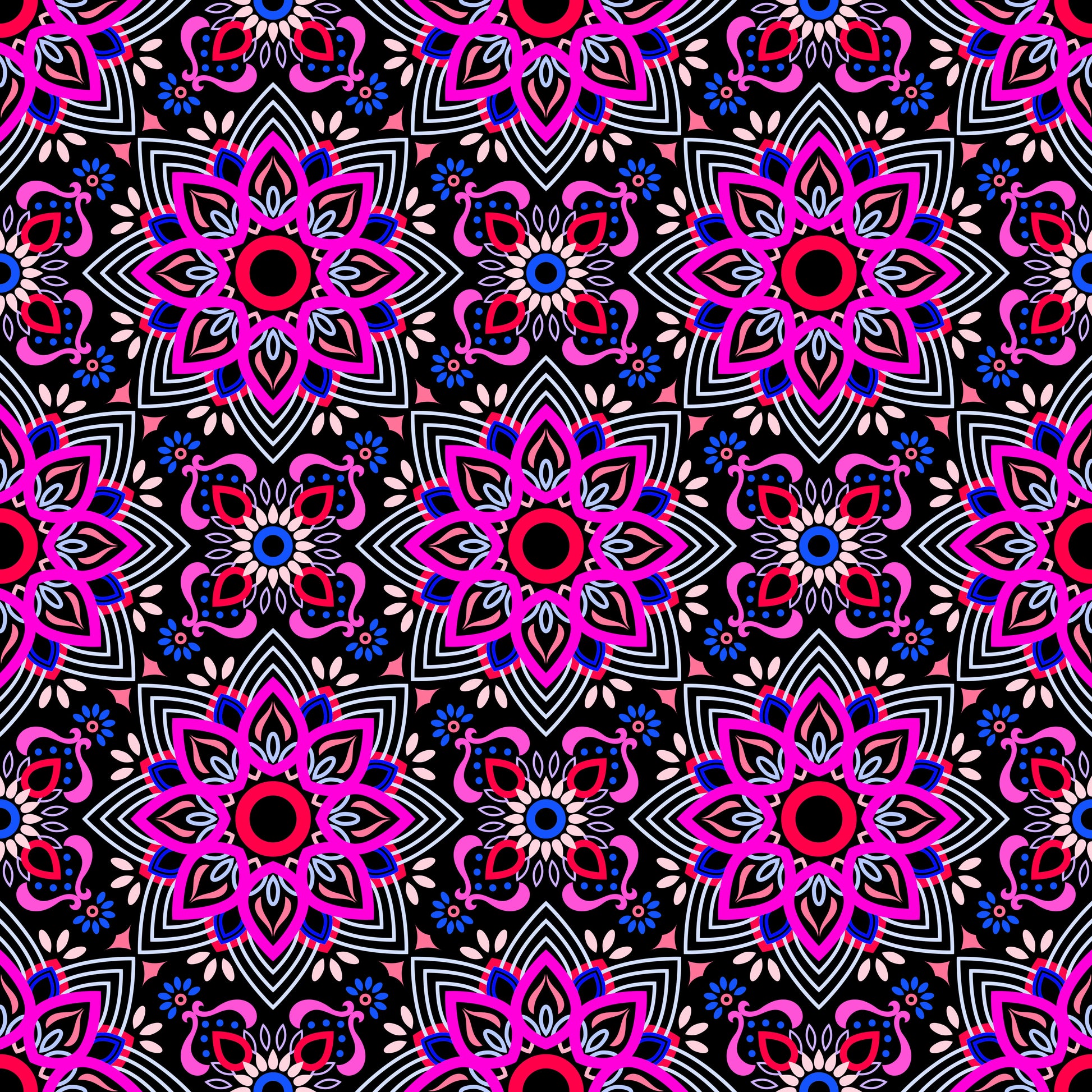 Pink - Blue - Red Mandala Fabric - 145