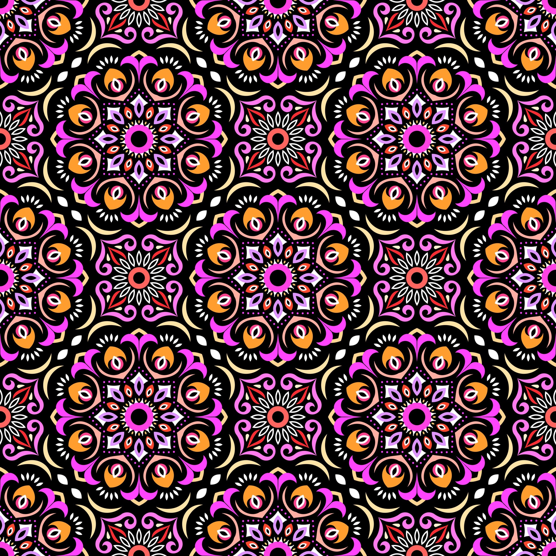 Pink - Orange Mandala Fabric - 209