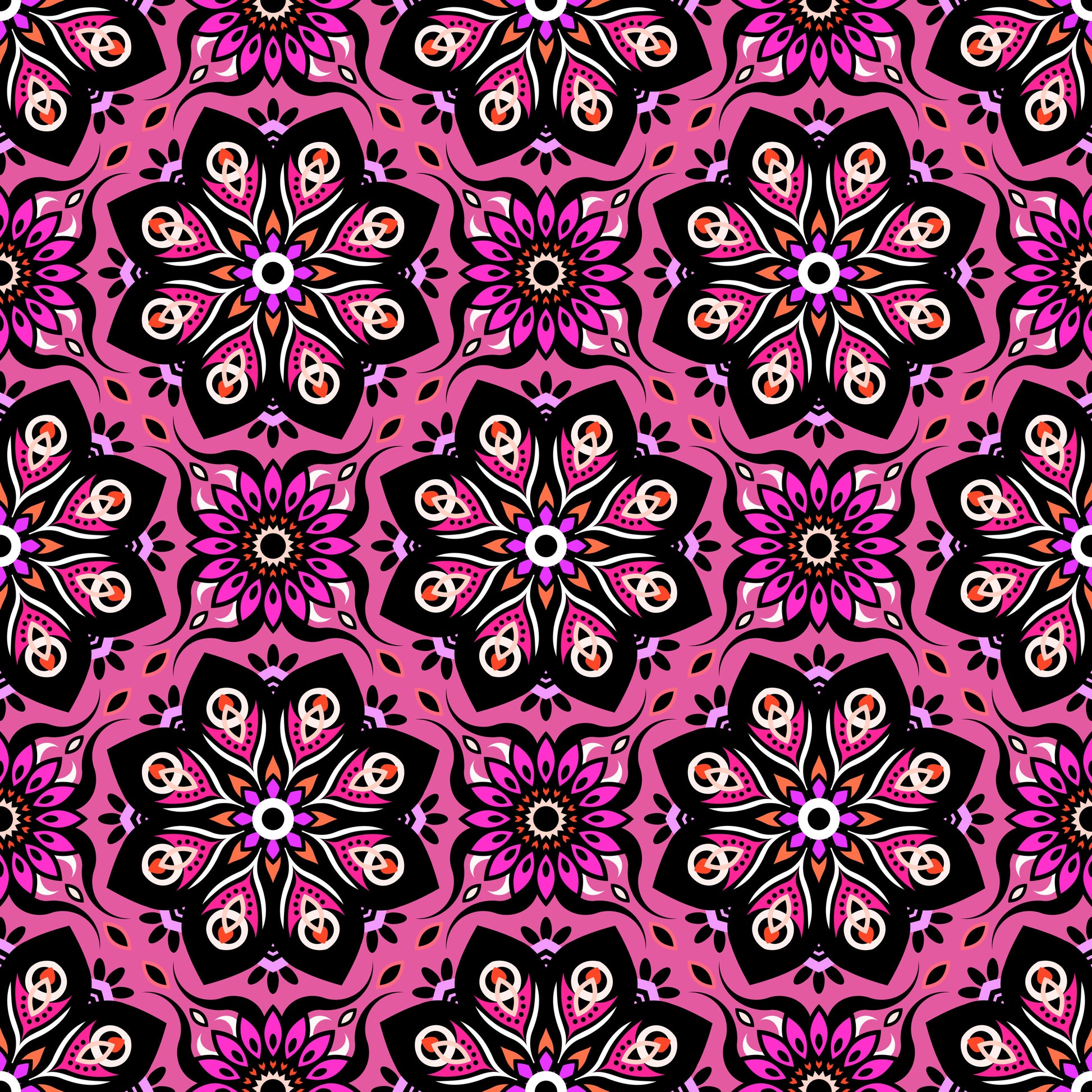 Pink - Orange - Purple Mandala Fabric - 236