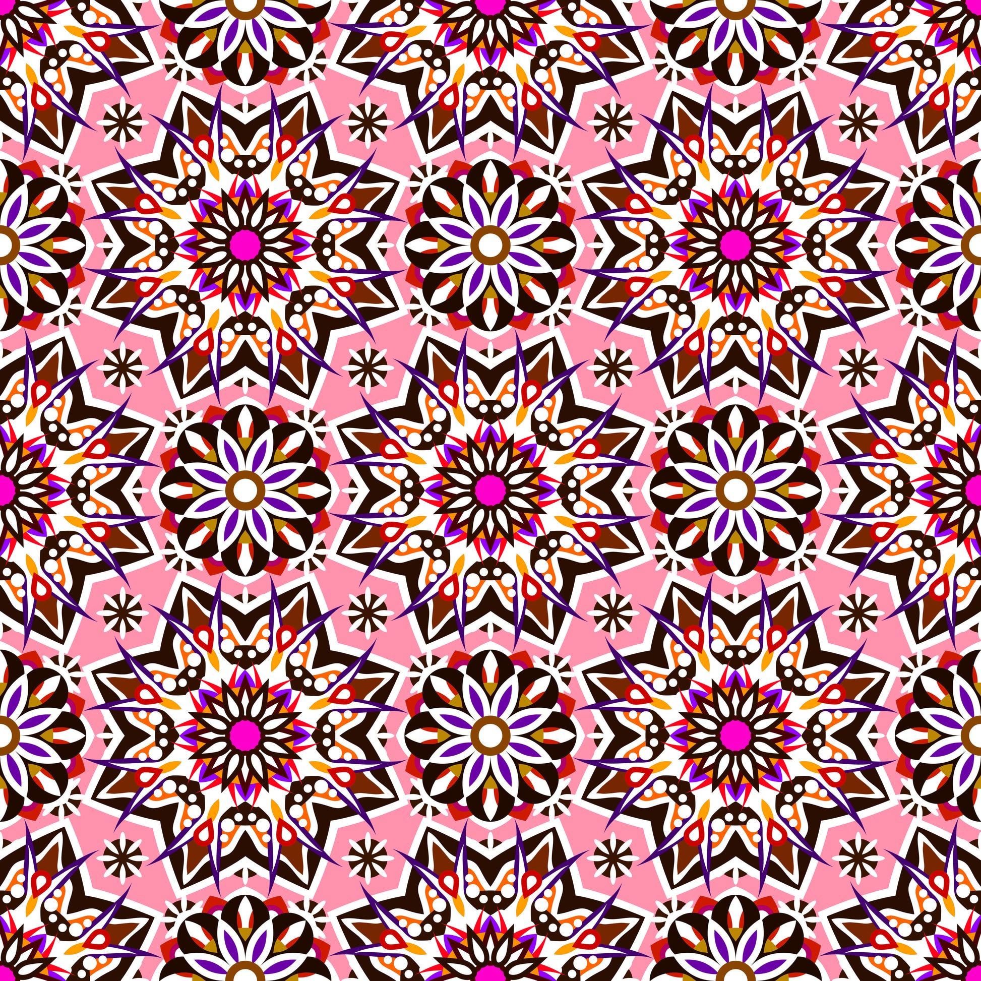 Pink - Orange - Purple - Red Mandala Fabric - 122i