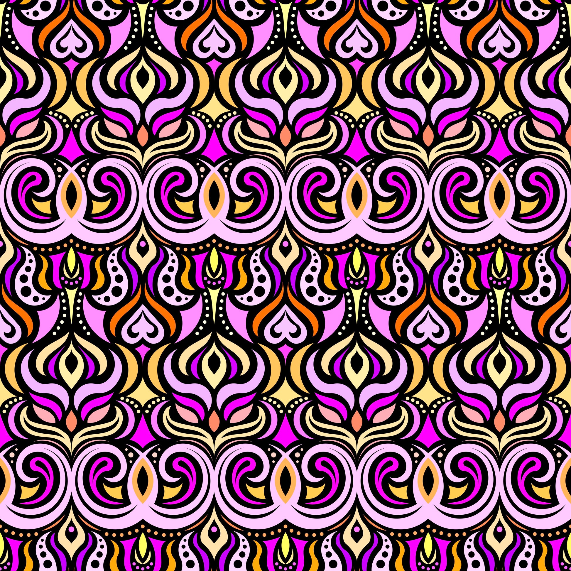 Pink - Orange - Yellow Abstract Doodle Fabric 1009.7