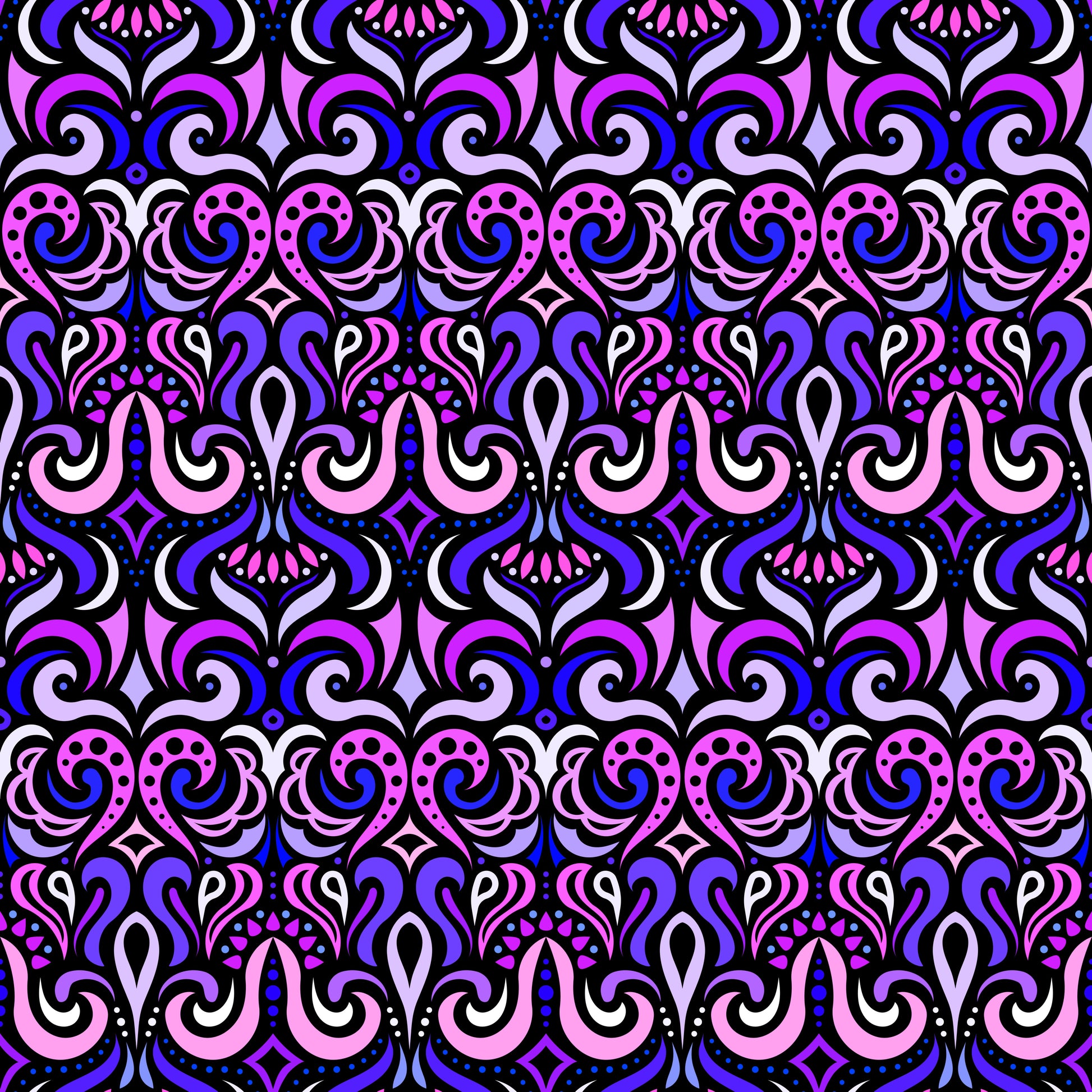Pink - Purple Abstract Doodle Fabric 1001