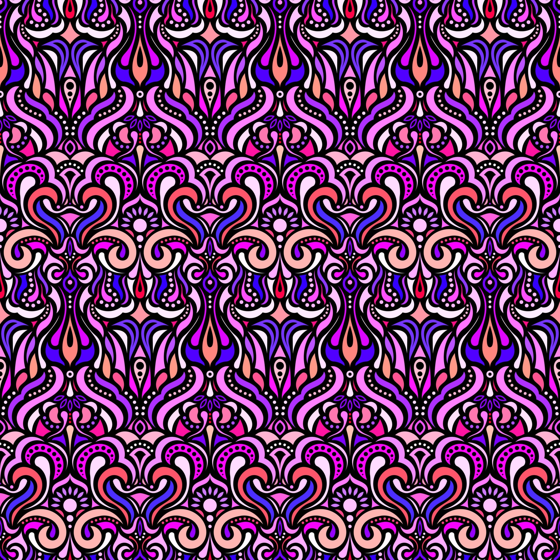 Pink - Purple - Red Abstract Doodle Fabric 1012