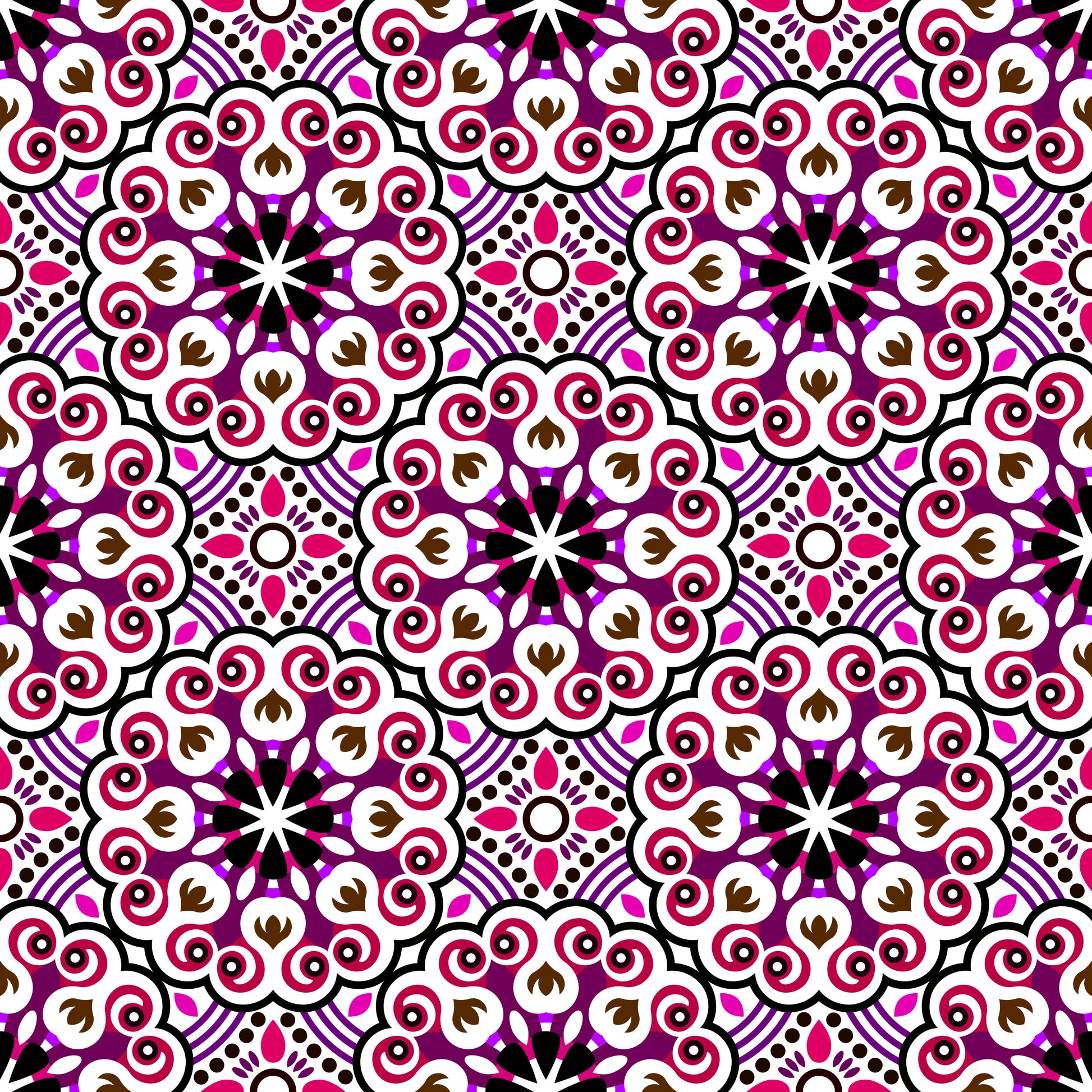 Pink - Red - Purple Mandala Fabric - 132i
