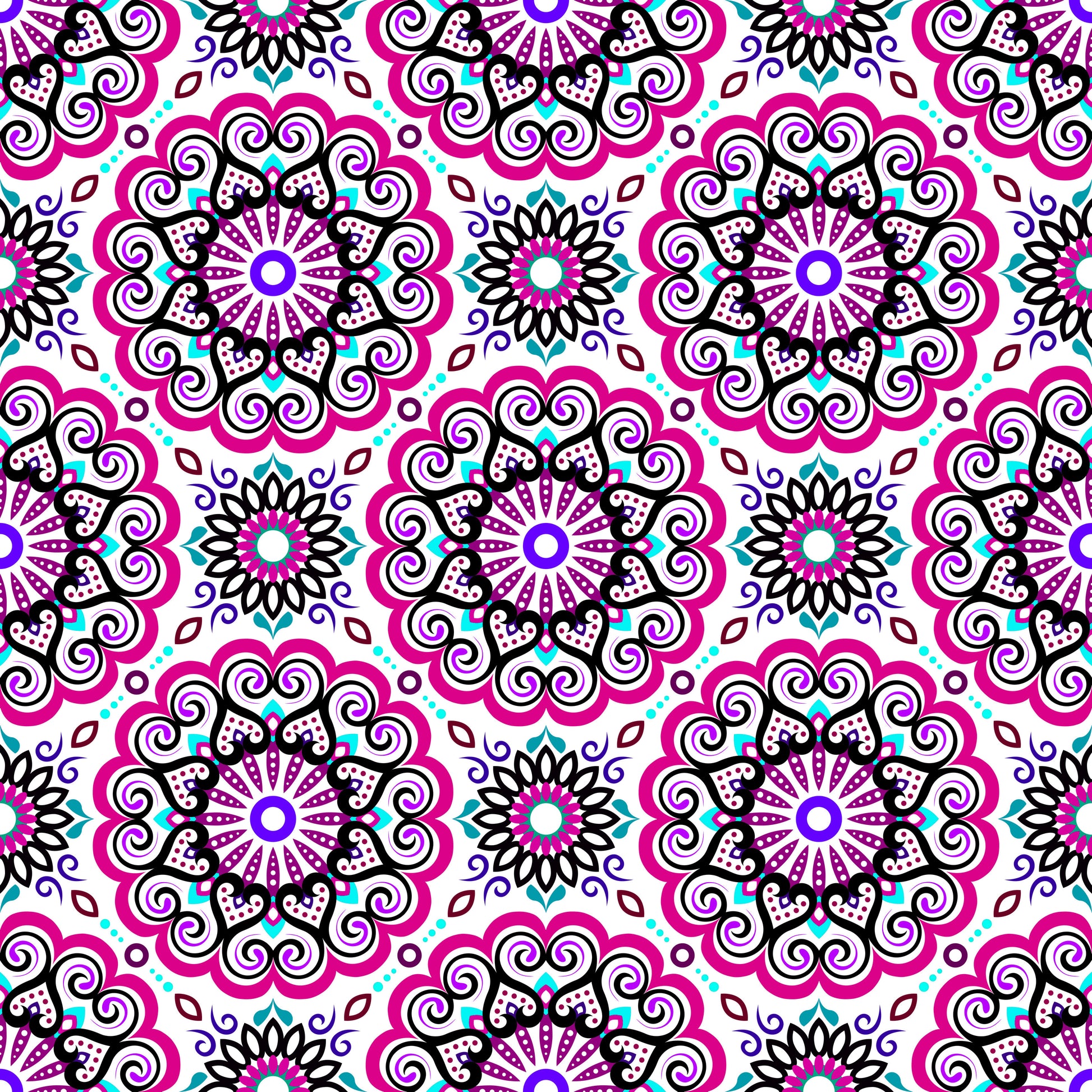 Pink - Turquoise - Purple Mandala Fabric - 179i