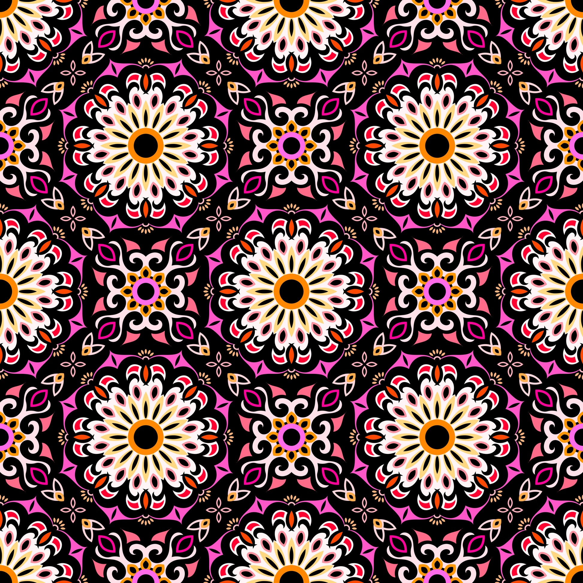 Pink - Yellow - Orange Mandala Fabric - 198