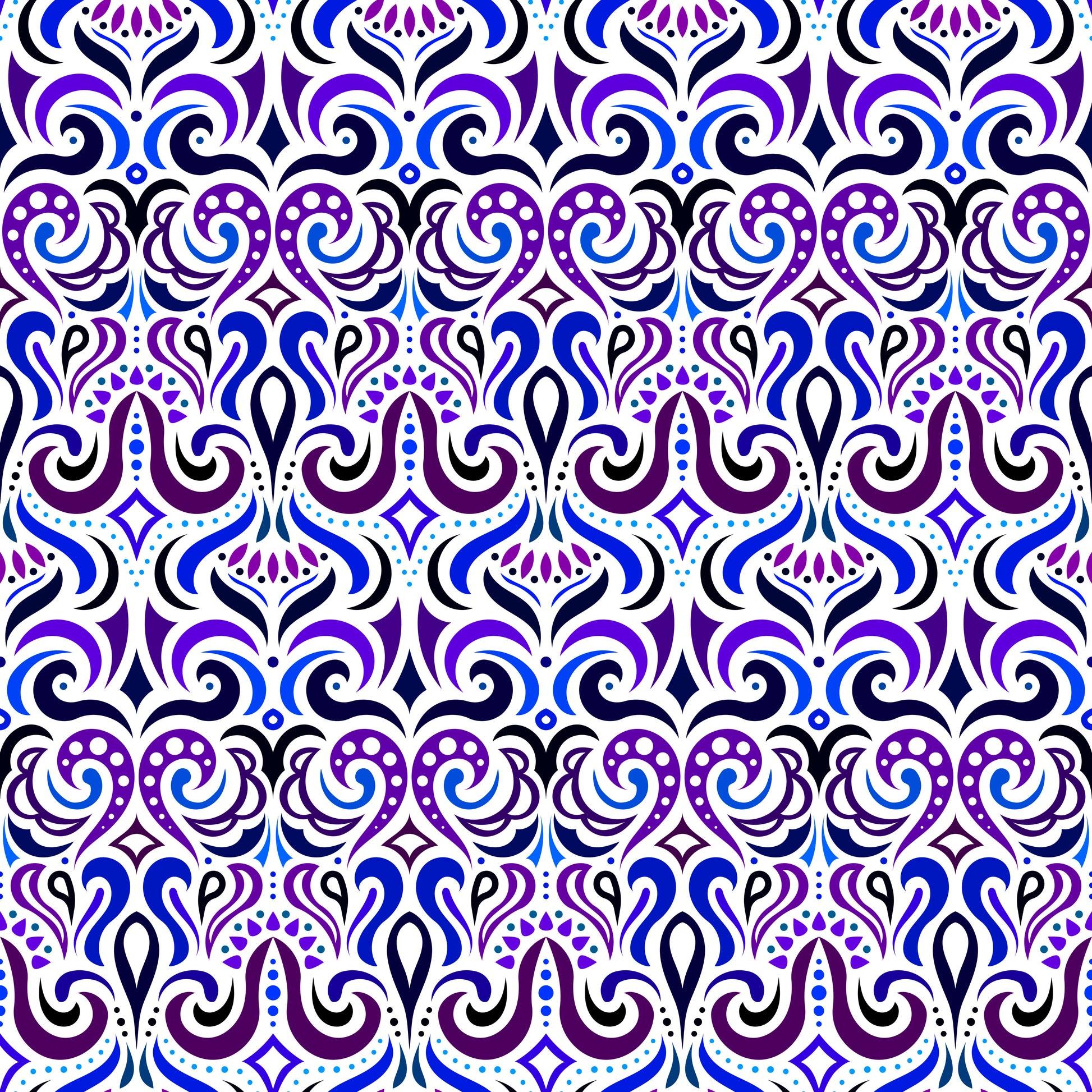 Purple - Blue Abstract Doodle Fabric 1001i