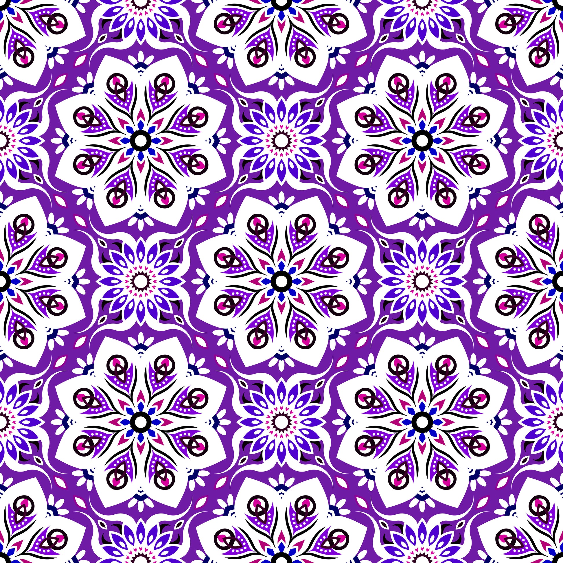Purple - Blue - Pink Mandala Fabric - 236i