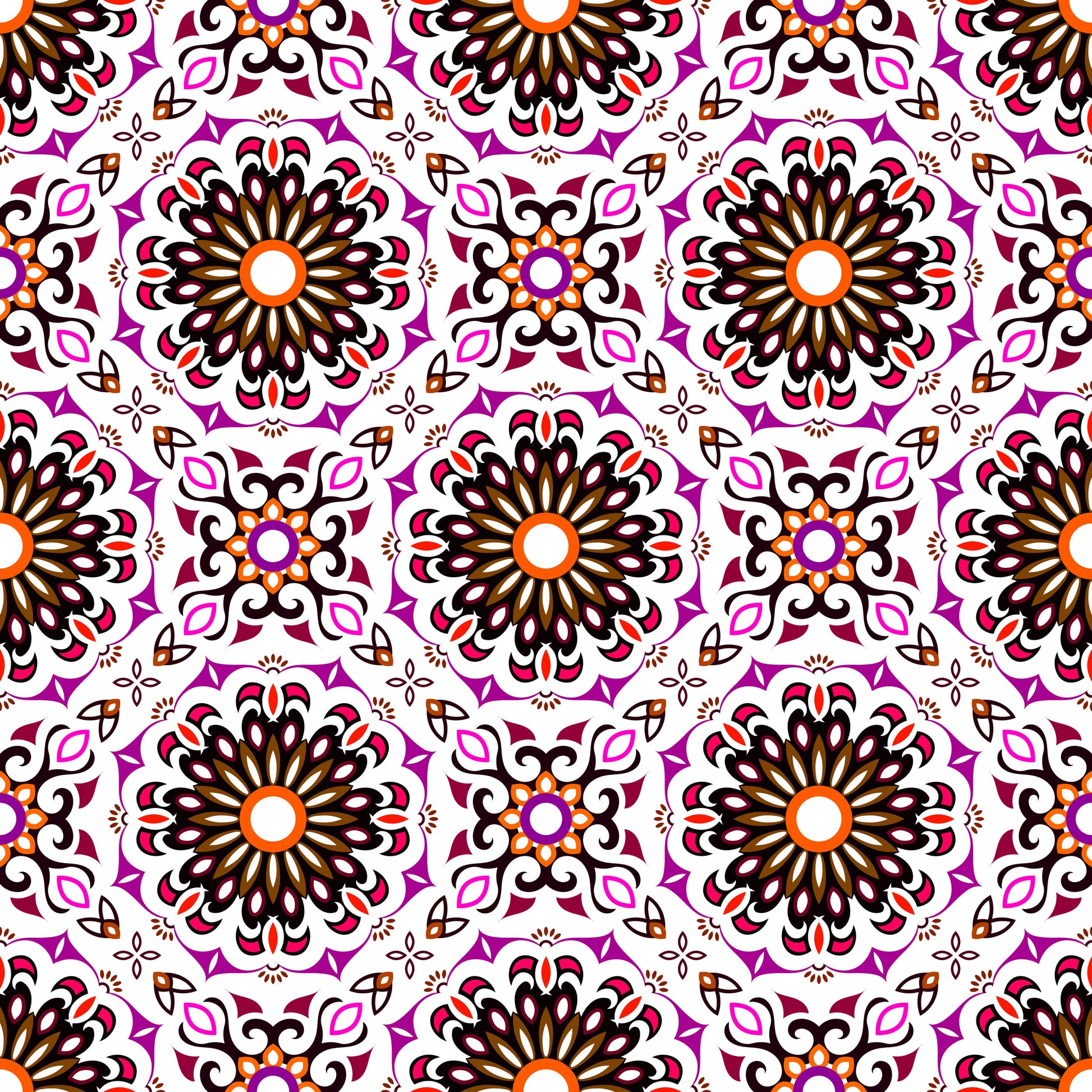 Purple - Orange - Red Mandala Fabric - 198i