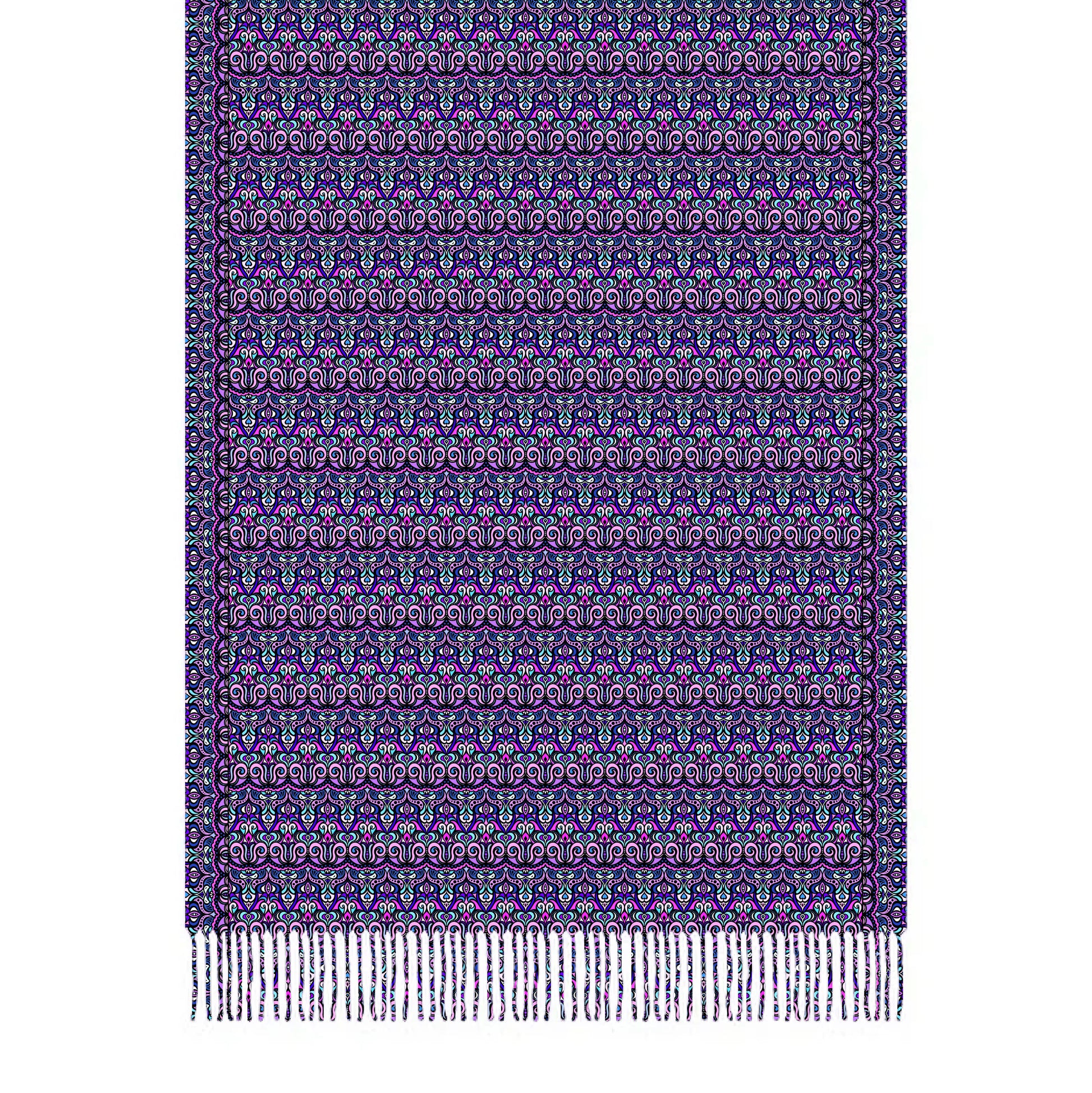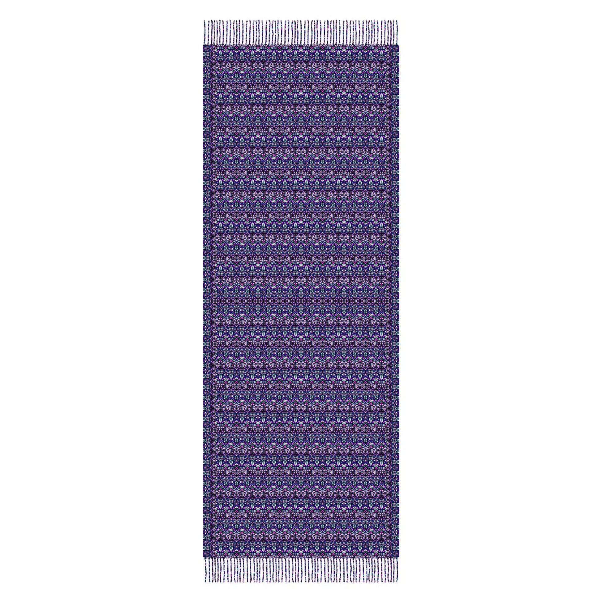 Purple - Pink - Turquoise Abstract Doodle Scarf with Tassels