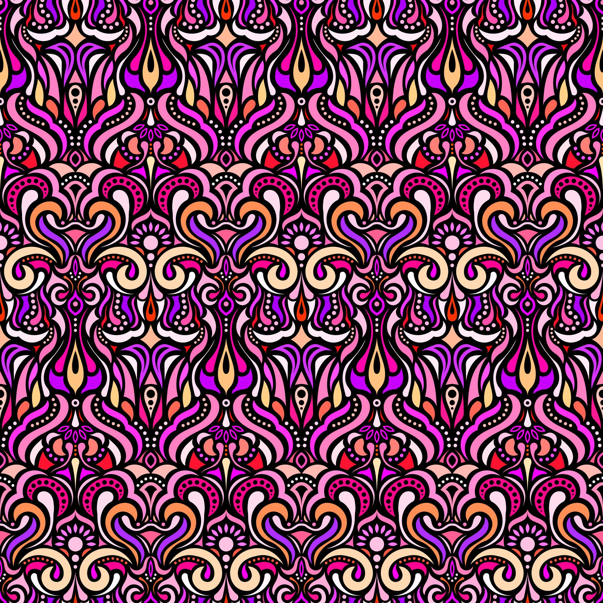Purple - Red - Yellow Abstract Doodle Fabric 1012