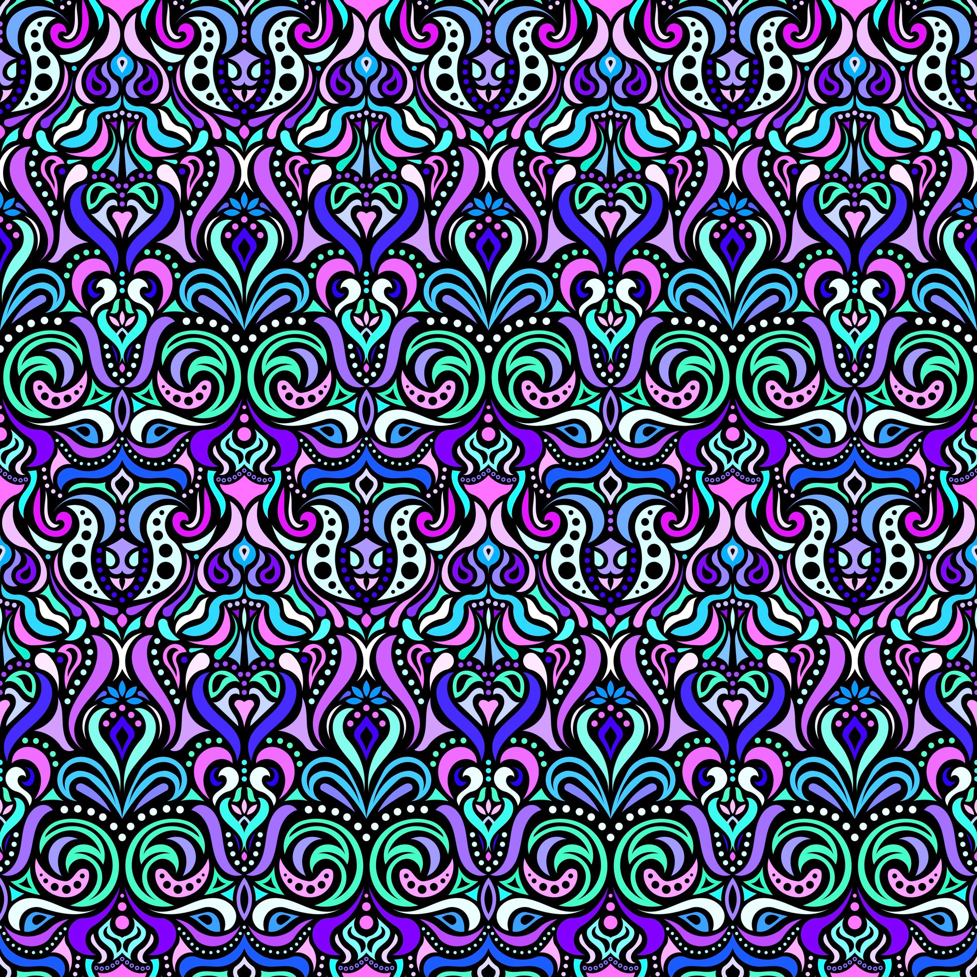 Purple - Turquoise - Blue Abstract Doodle Fabric 1011.4