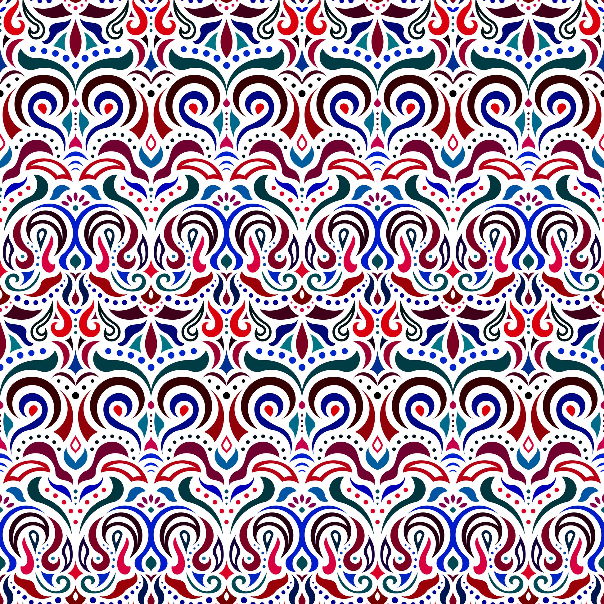 Red - Blue Abstract Doodle Fabric 1007i