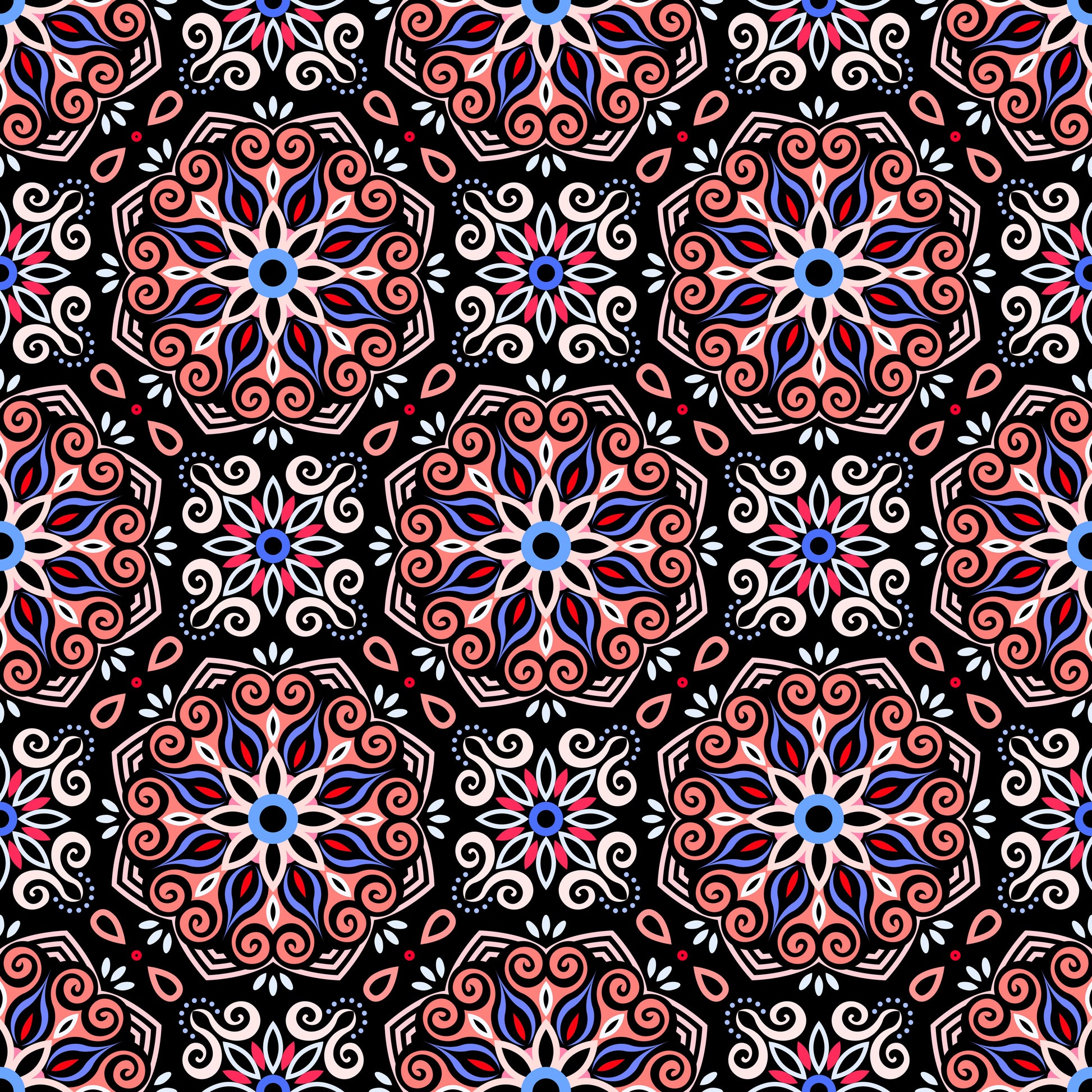 Red - Blue Mandala Fabric - 203