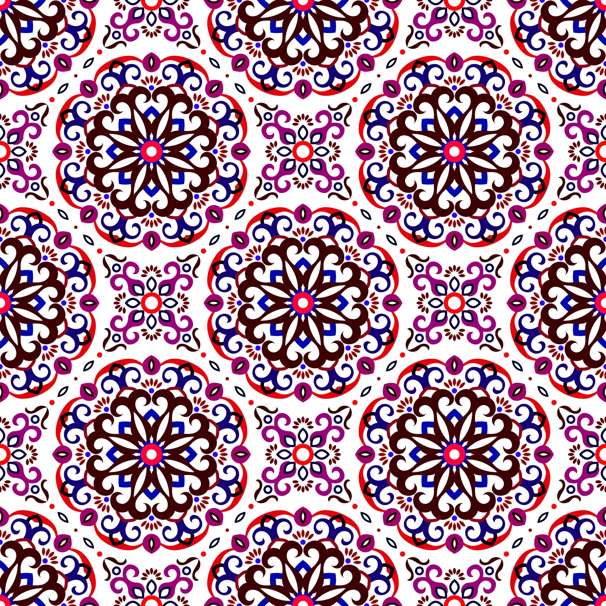 Red - Blue - Maroon Mandala Fabric - 188i