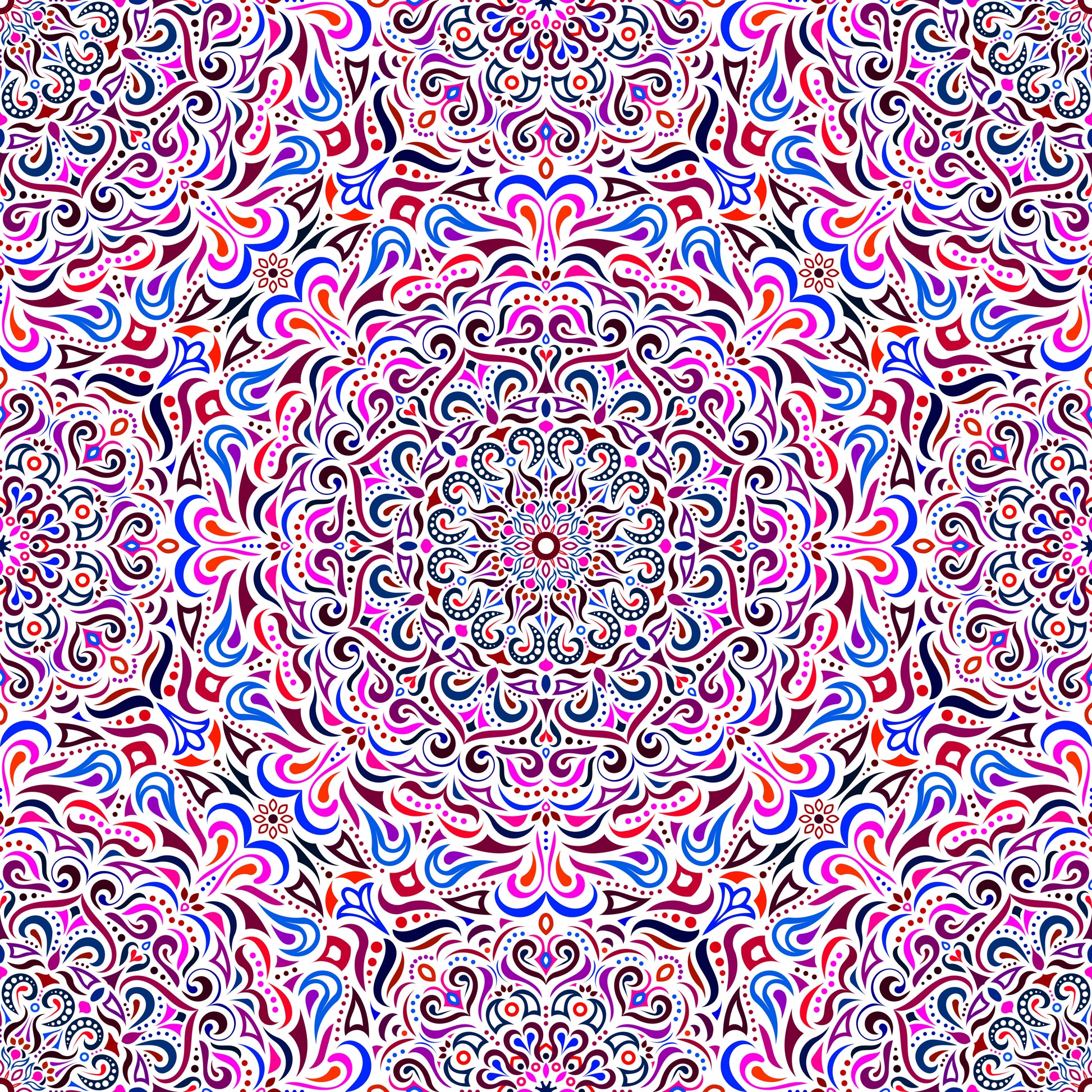 Red - Blue - Pink Mandala Fabric 2005i