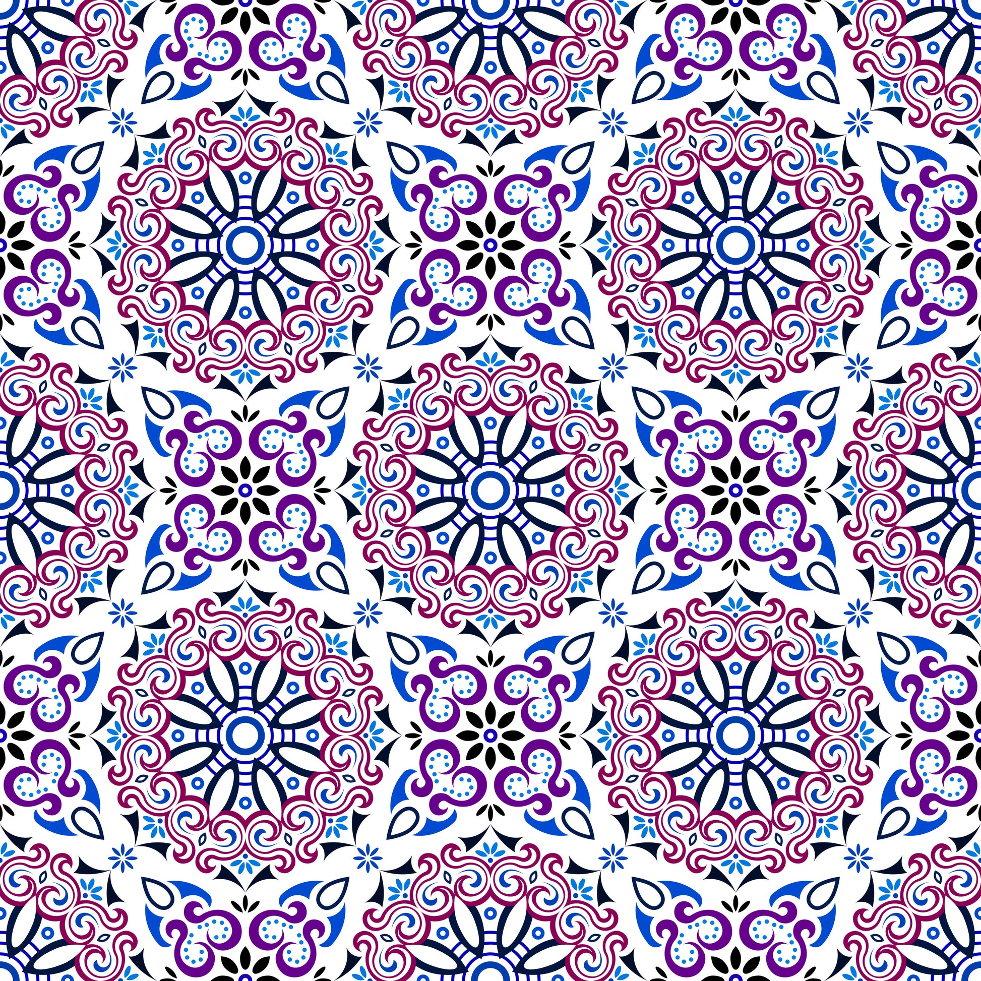 Red - Blue - Purple Mandala Fabric - 166i