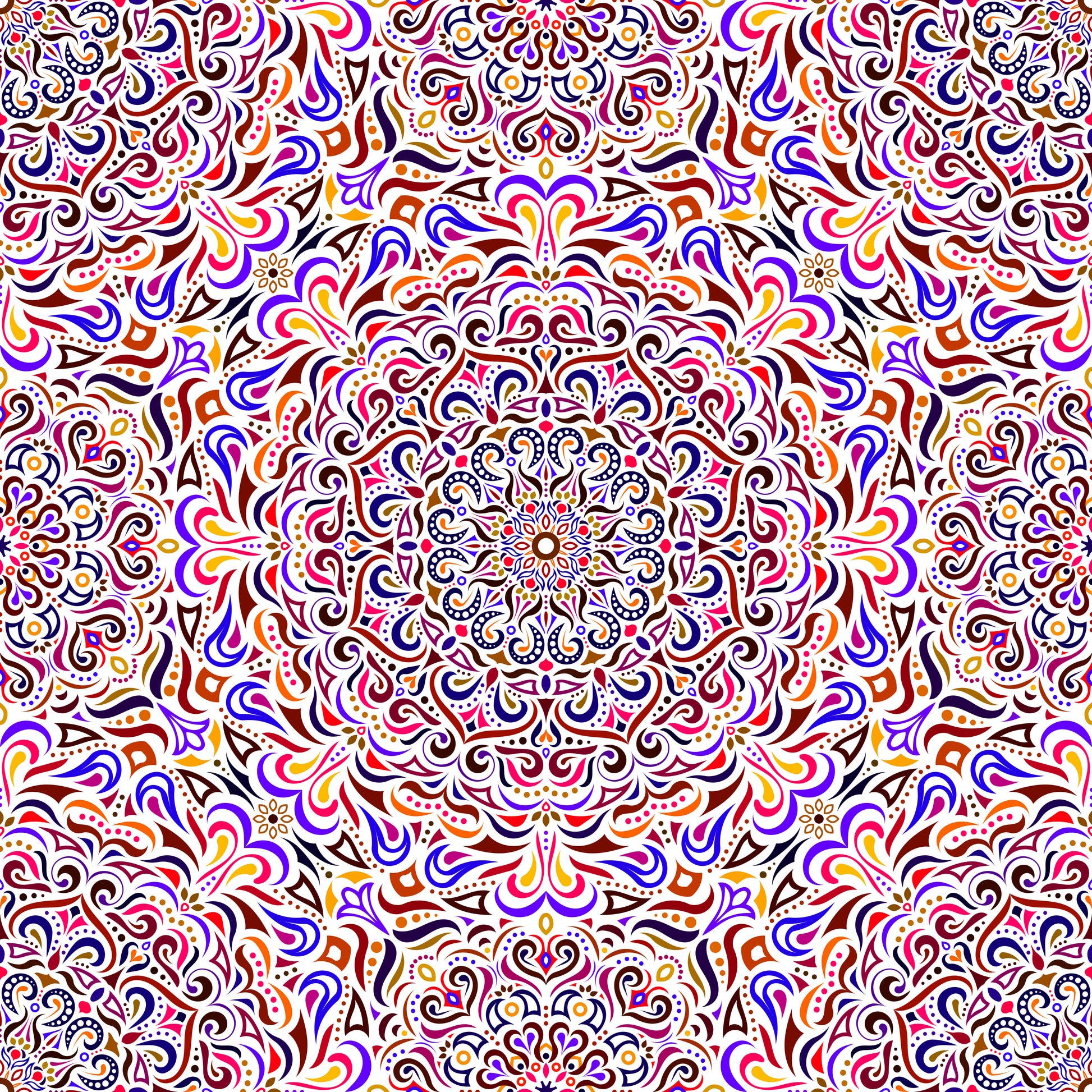 Red - Blue - Yellow Mandala Fabric 2005i
