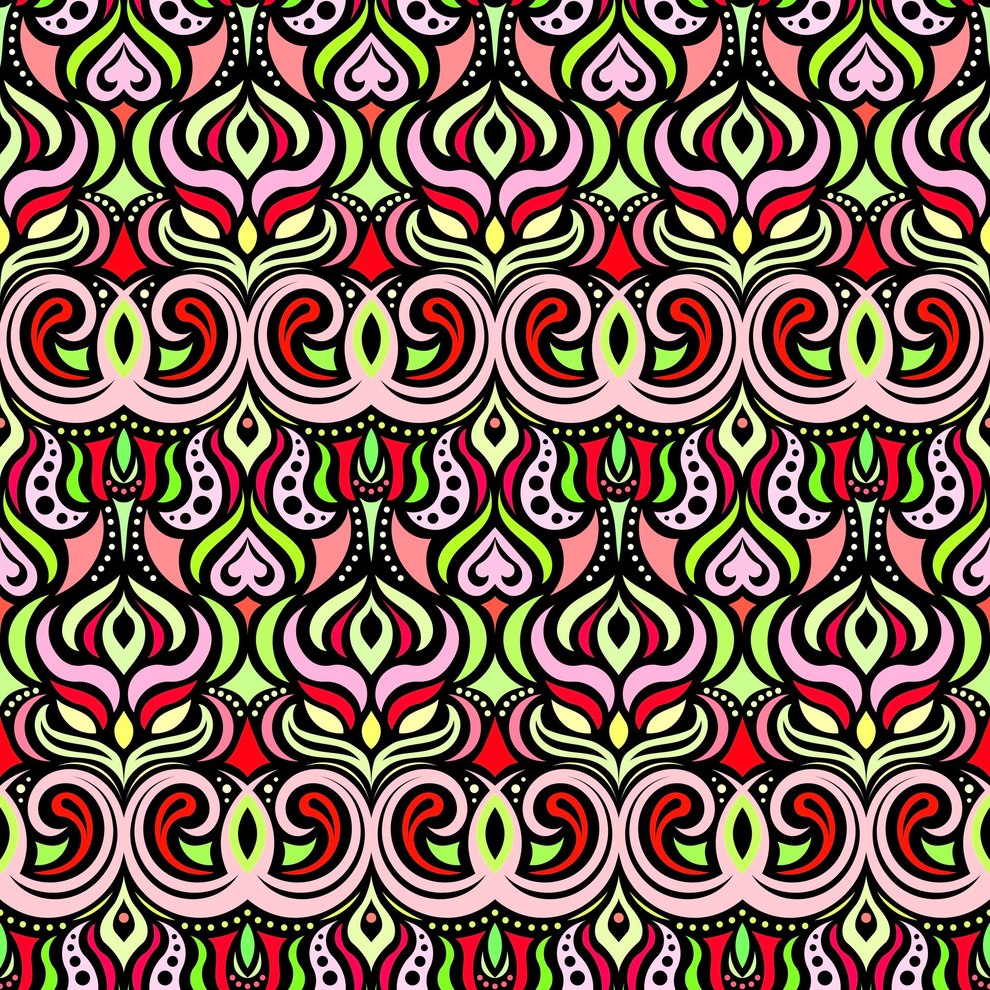 Red - Green Abstract Doodle Fabric 1009.7