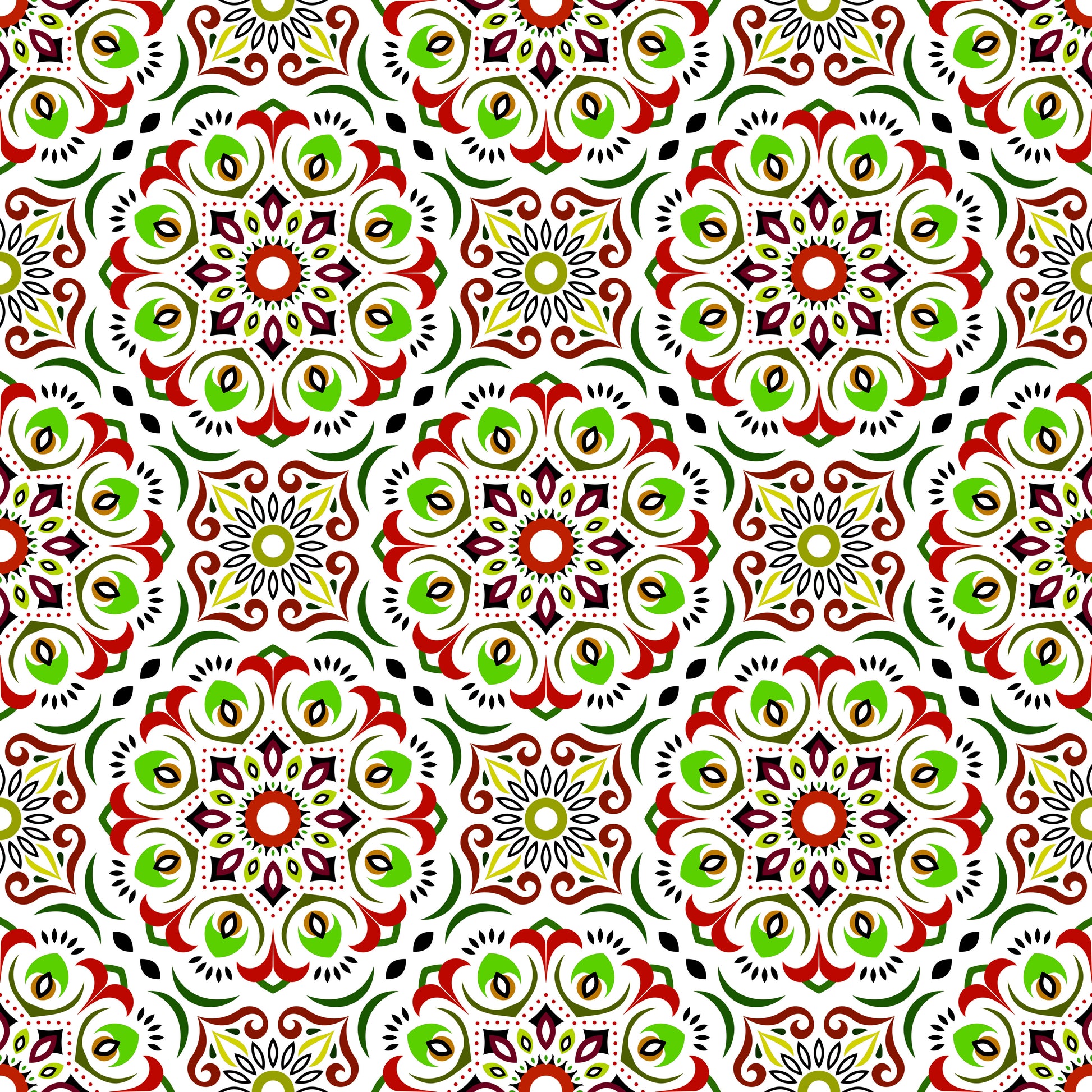 Red - Green Mandala Fabric - 209i