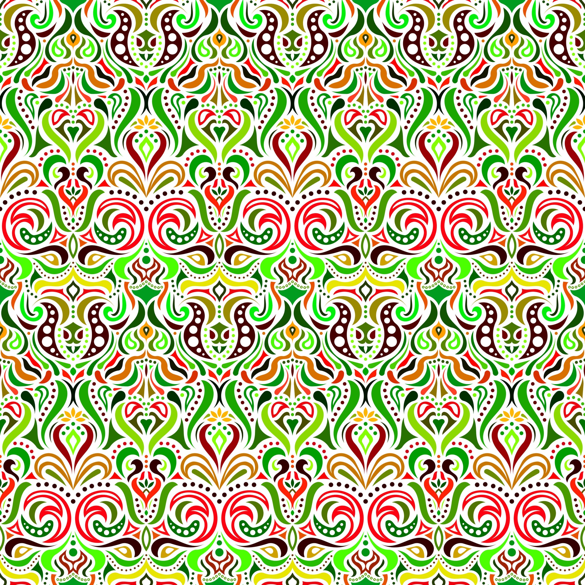 Red - Green - Yellow Abstract Doodle Fabric 1011.4i
