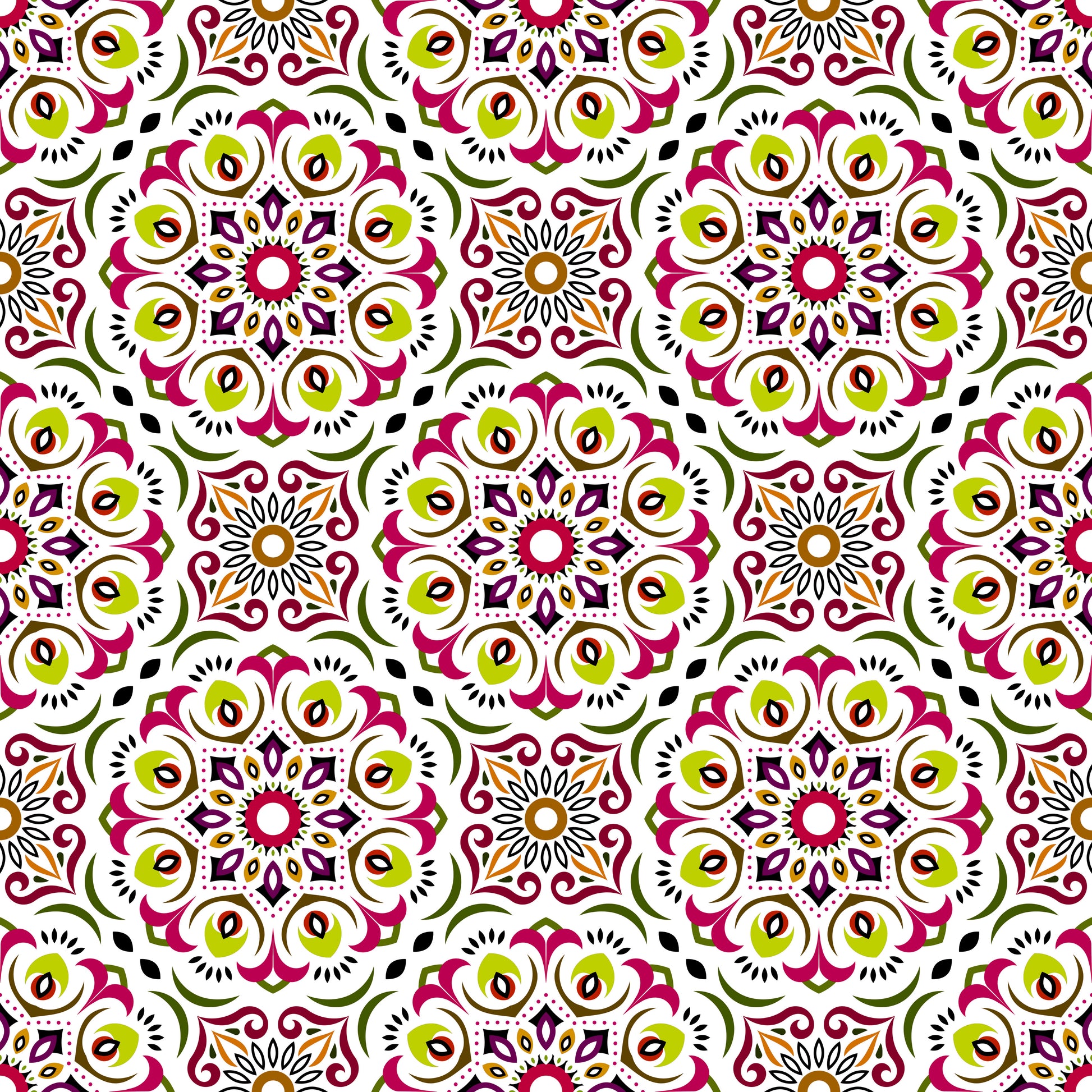 Red - Green - Yellow Mandala Fabric - 209i