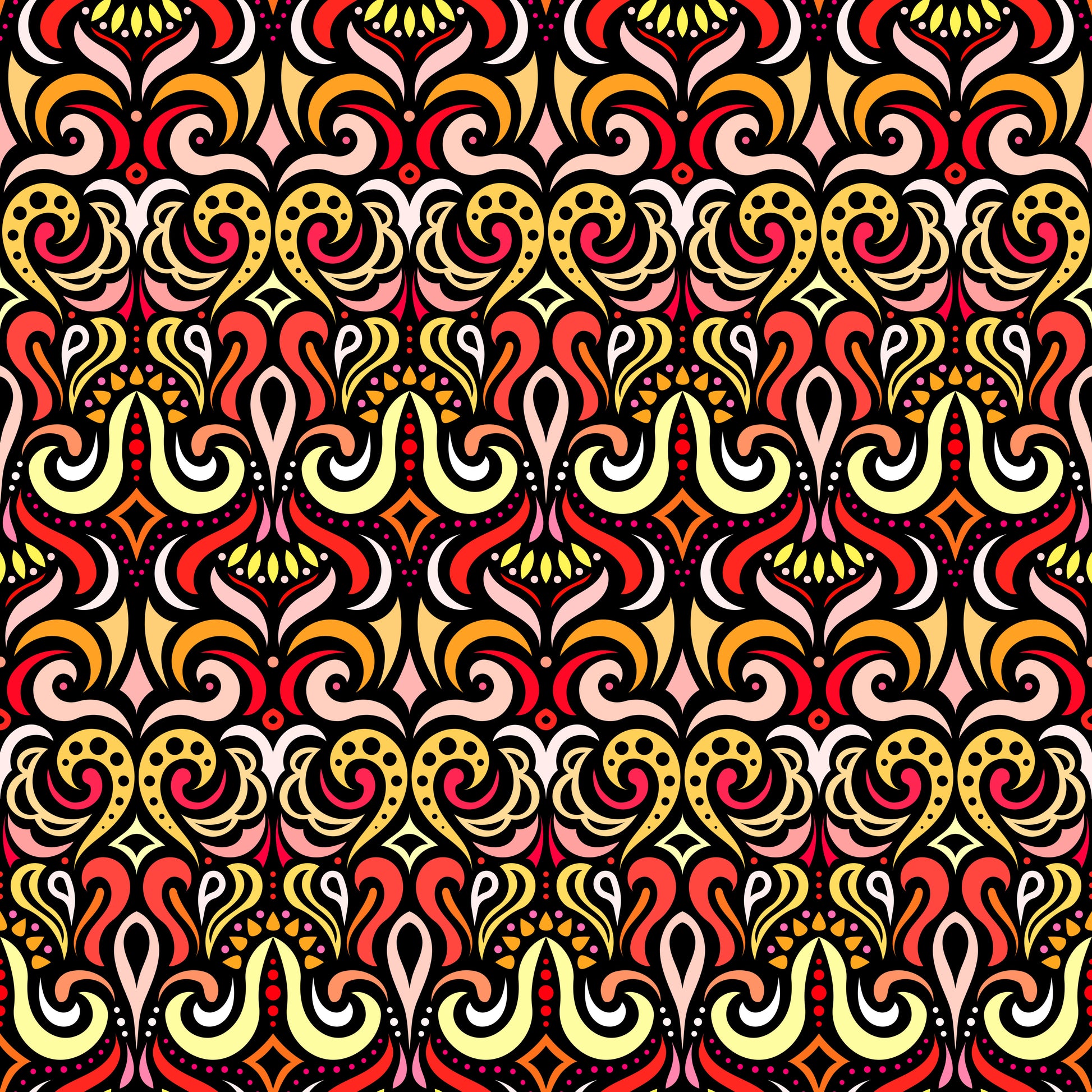 Red - Orange - Yellow Abstract Doodle Fabric 1001
