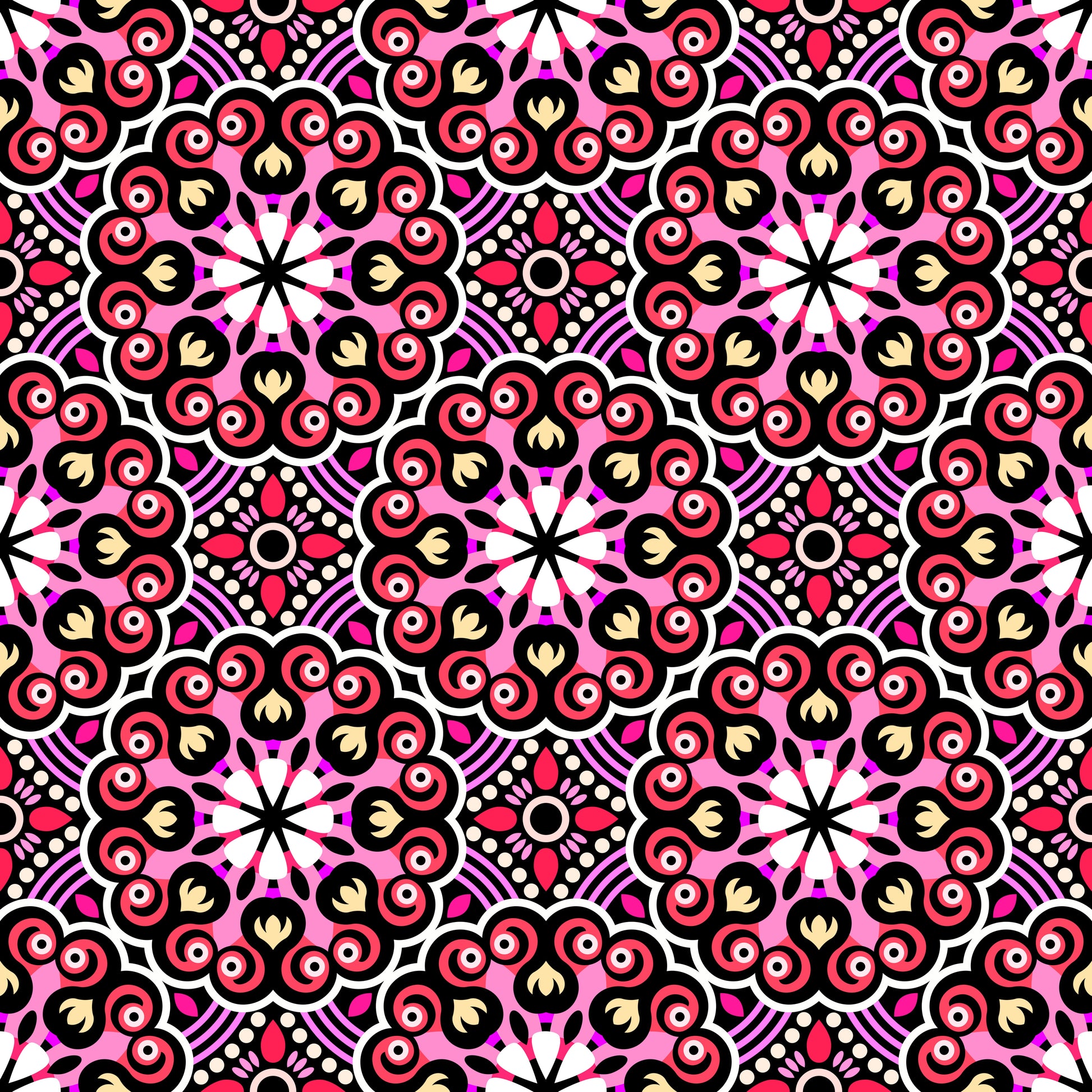 Red - Pink - Yellow Mandala Fabric - 132