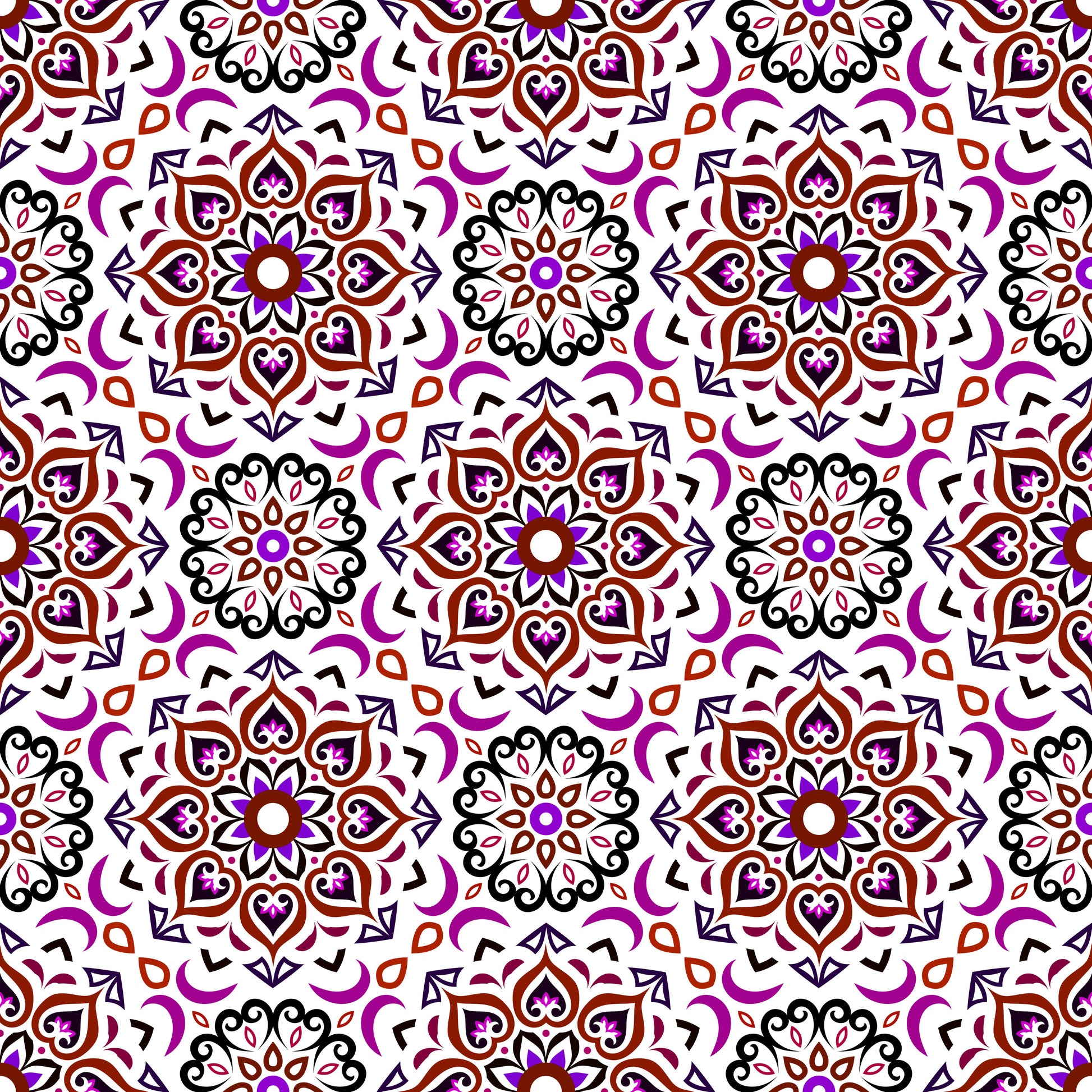 Red - Purple Mandala Fabric - 213i